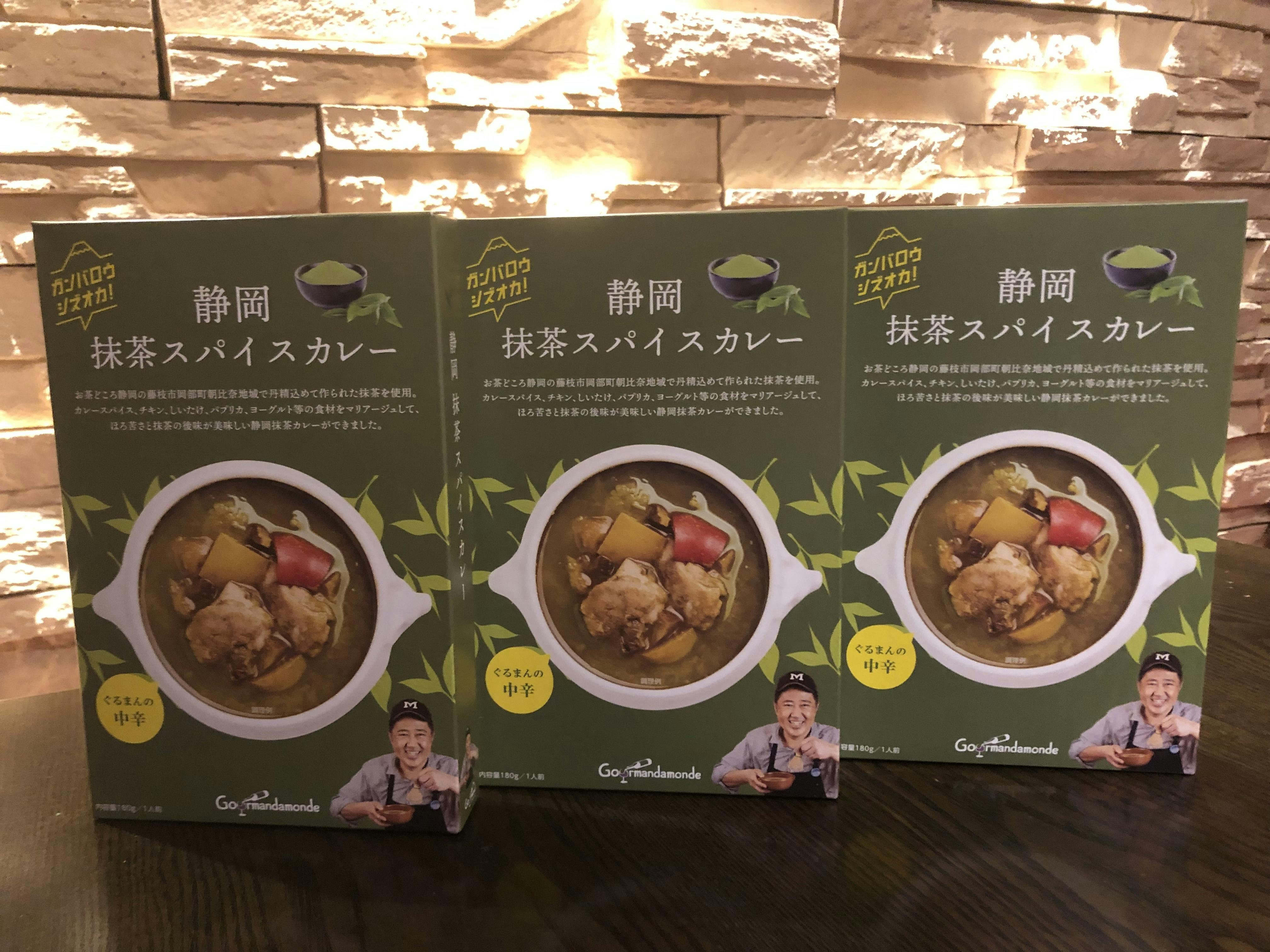 もう一つは、消費減少傾向の課題を抱える静岡特産物のお茶の販売促進に取り組む方とのご縁から、ご紹介頂いた「藤枝茶」。これを使用した「静岡抹茶スパイスカレー」開発に取組んでいます。