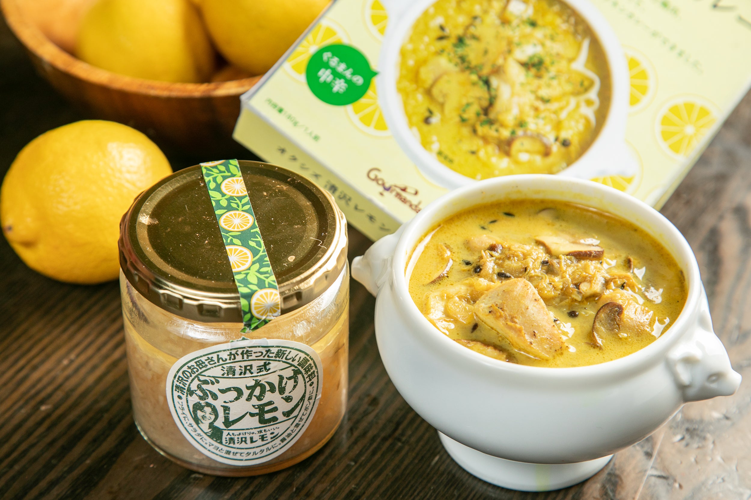 清沢の名産品清沢レモンをしっかり堪能頂きたく、特別セットを返礼品としてご用意致しました。「清沢式ぶっかけレモン」は、そのまま野菜にかけて簡単さっぱり「サラダドレッシング」、マヨネーズと混ぜて「タルタルソース」に、さらにはお醤油と混ぜれば「洋風ポン酢」にもなります。 お土産物としても好評な一品ですが、もちろん「清沢レモンチキンカレー」との相性も抜群です!ぜひ、色々試せる夢のコラボセットをお試しください。