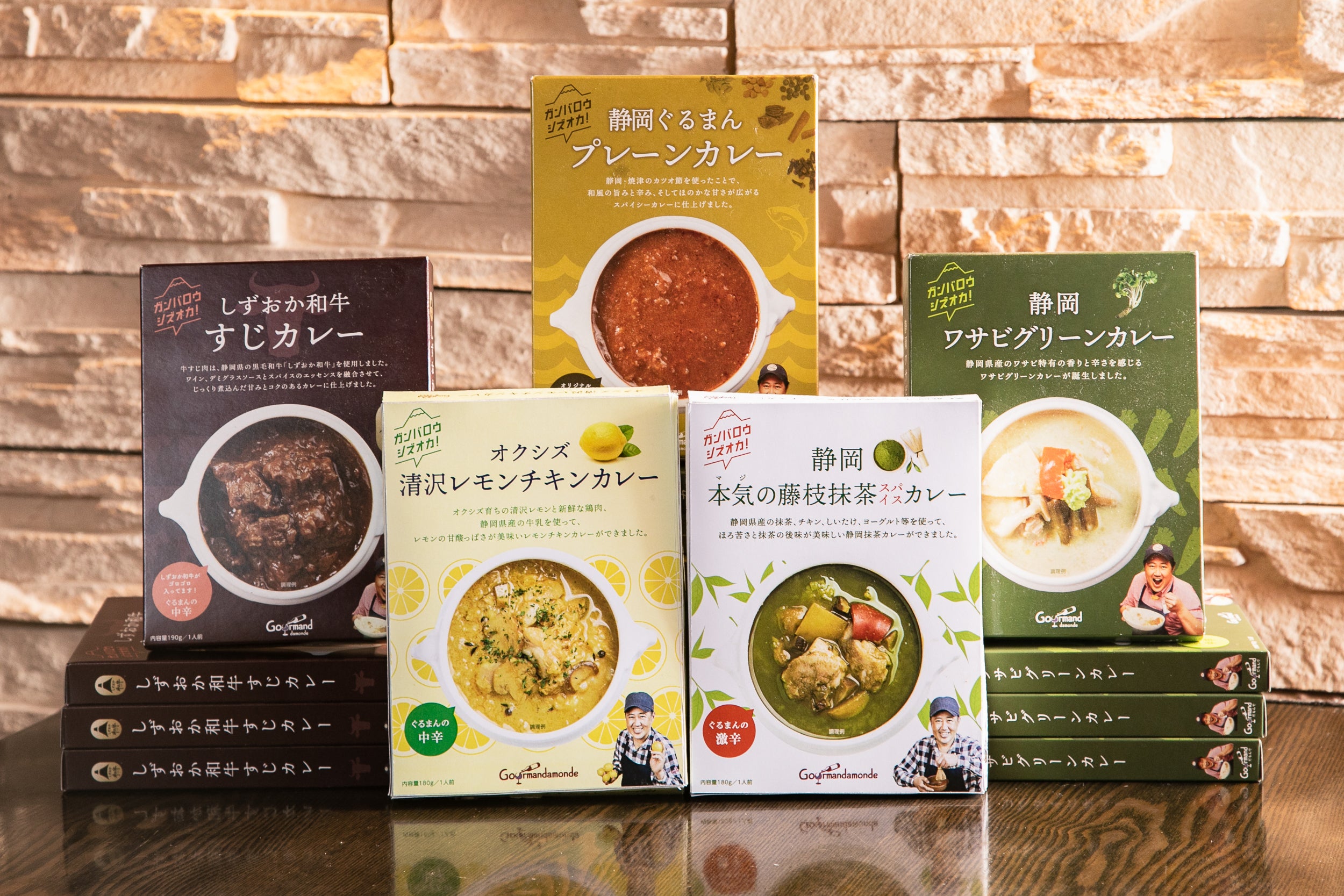 静岡ぐるまんプレーンカレー(2023年10月)、静岡ワサビグリーンカレー(2023年9月)、しずおか和牛すじカレー(2023年9月)、清沢レモンチキンカレー(2024年3月予定)、静岡抹茶スパイスカレー(2024年3月予定)