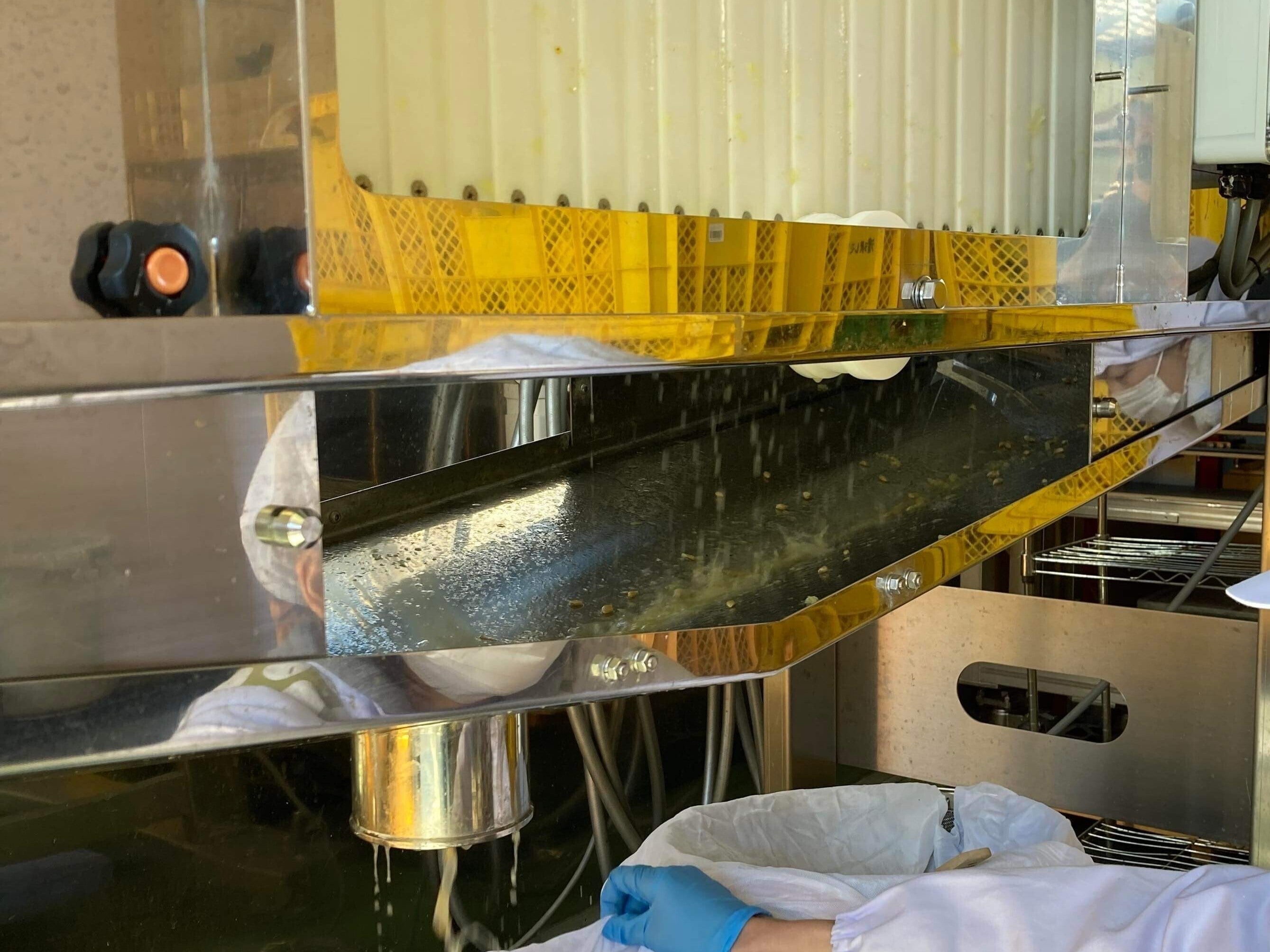 収穫した清沢レモン果汁を絞っている様子