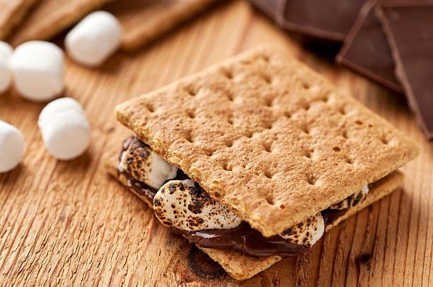 焼きマシュマロをチョコレート・ナッツと一緒にビスケットにはさめば、
