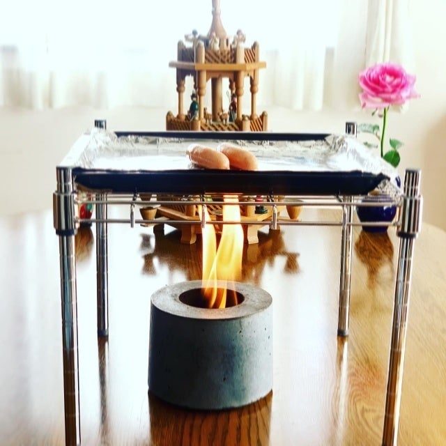 ラックを置けば、ミニBBQ台に早変わり。一家に一台、万が一のときには電気やガスが
