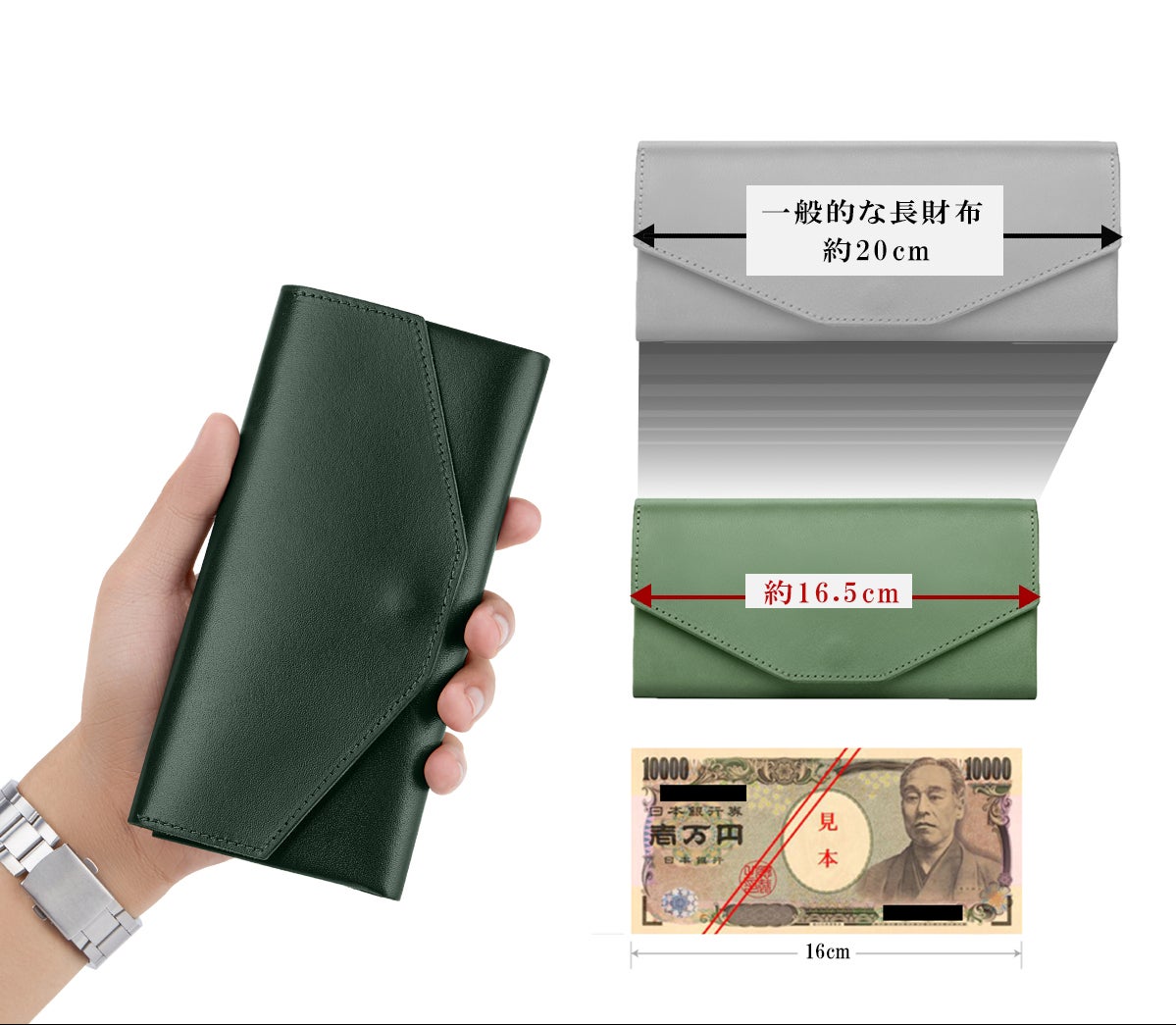 1万円紙幣に合わせる幅にすることで今までの長財布とは重心が変わり、