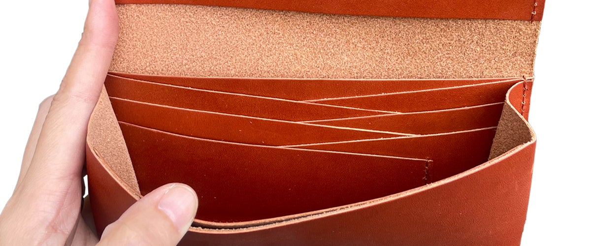 それなら現代の財布のベストアンサーを作りたい!と、開発したのが最小クラスの長財布でした。