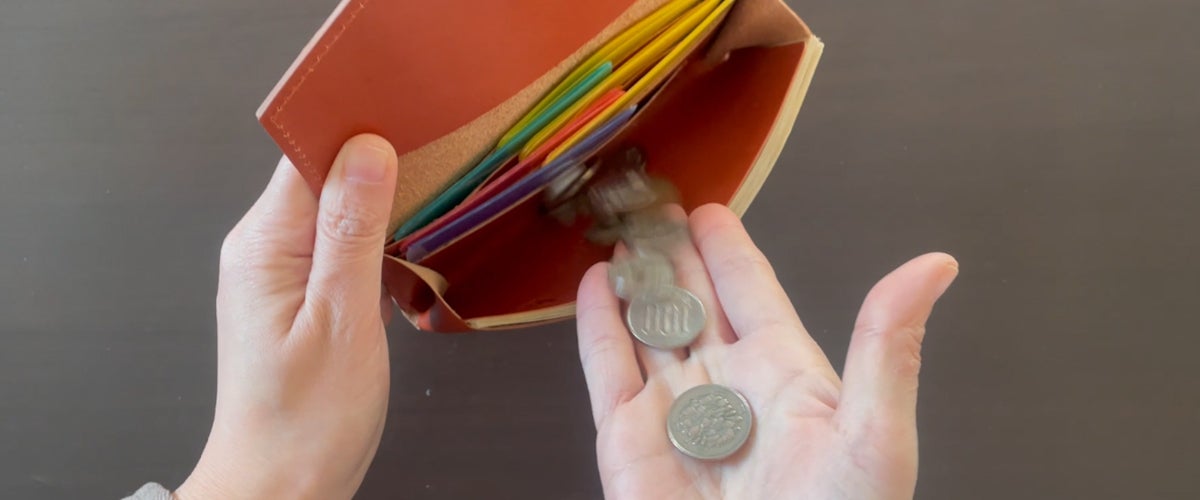 お財布を並行にすると小銭を広げるスペースを大きく使うことができるので