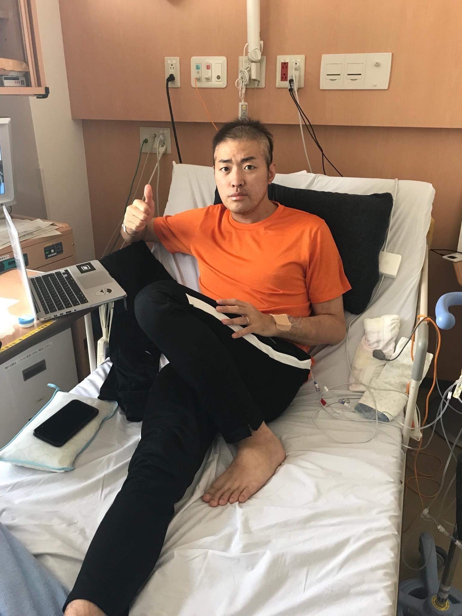 奇跡的にその日はフルフェイスを着用していた為何とか生き延びるも、意識不明の状態が3日続き1年間病院生活を送る。