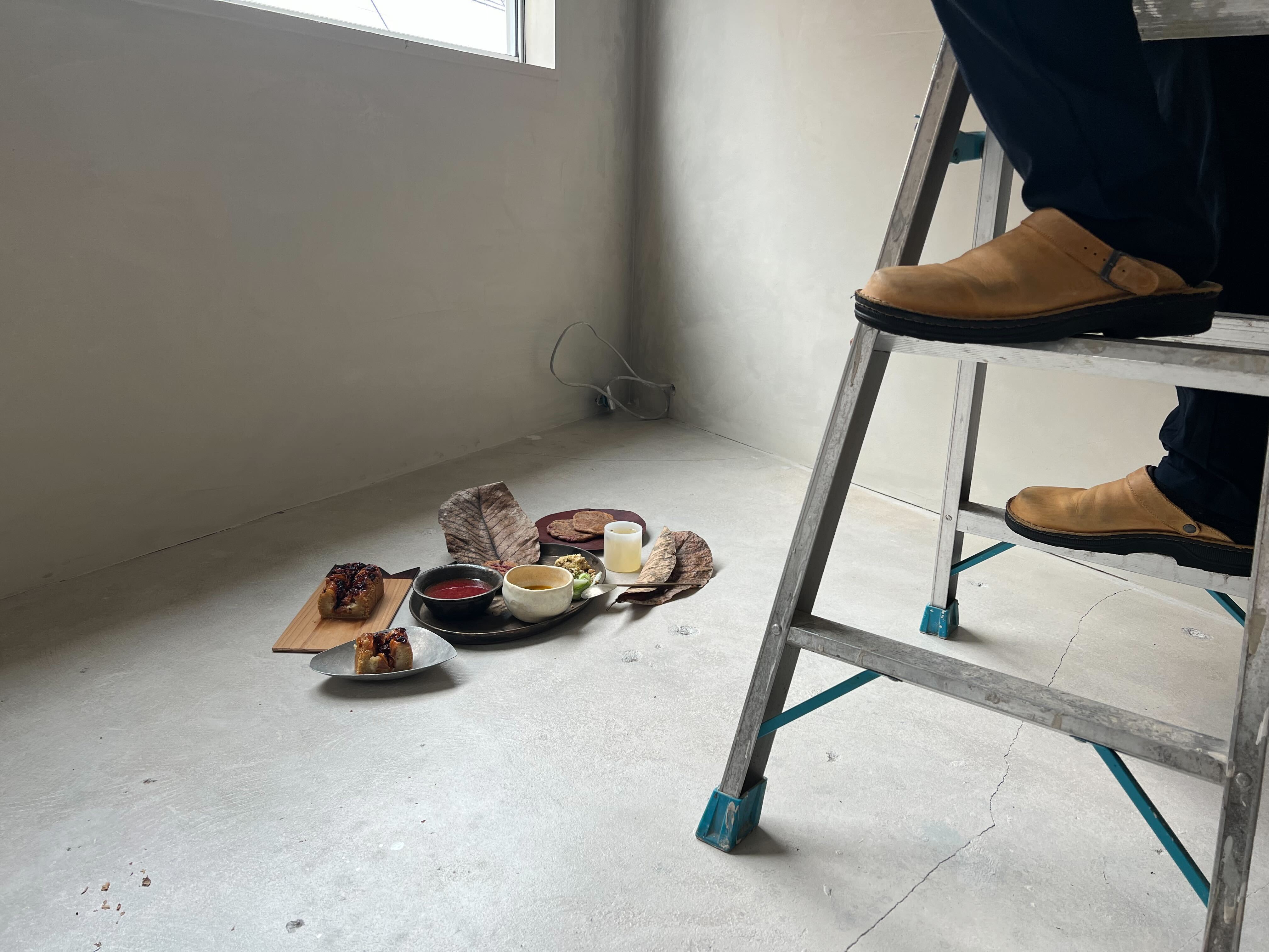 2Fに客席が入る前、脚立を使って撮る幡野さん
