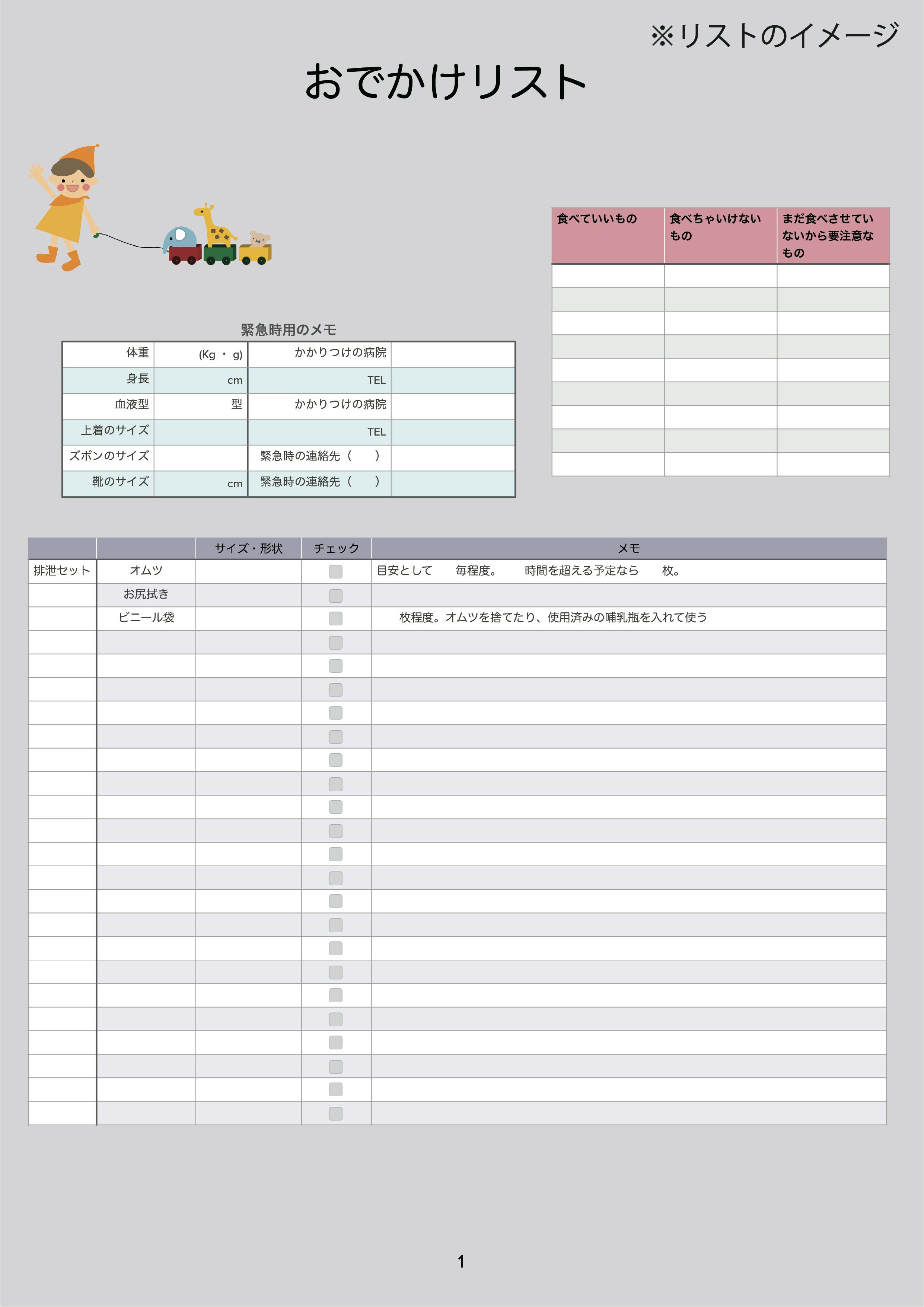 ・おでかけの際の持ち物リスト
