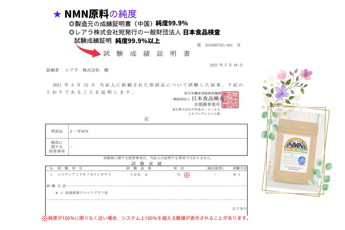 ★NMN原料「純度99.9%」 日本食品検査の試験成績証明 純度99.9%以上
