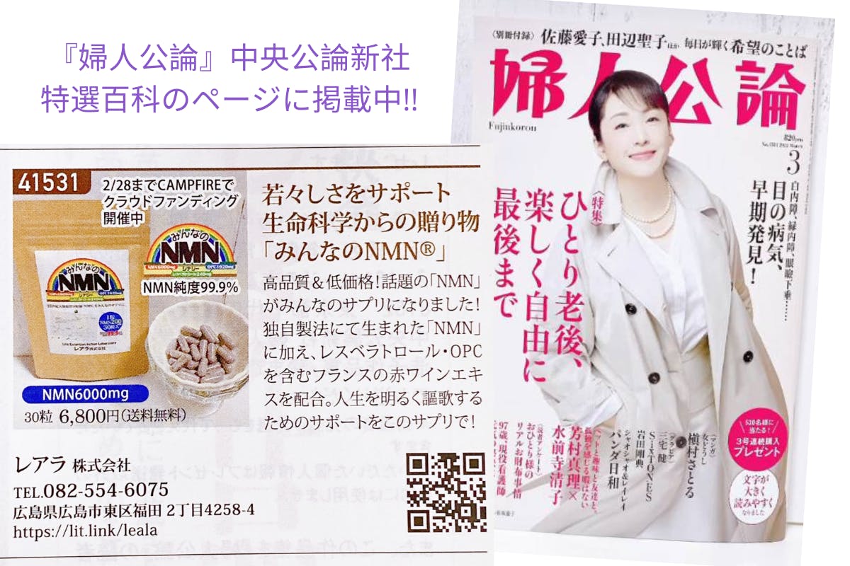 2022/02/15 09:00『みんなのNMNⓇ』レアラ株式会社です。応援・ご支援いただきました皆様、本当にありがとうございます。この機会に高品質NMNサプリ28~40%OFFというチャンスを是非手にしていただけたらと思います。ご支援や情報拡散をどうぞよろしくお願い致します。プロジェクト終了後、ご支援いただいた方に早くお届けしたいため、3月1日㈫よりなるべく早く発送予定ですすめております。1〜6袋まではネコポスでお届け先ポストへ配達、7袋〜は宅急便にて配達となります。3月までもうしばらくお待ちください。まだまだご支援が必要なため、がんばっております!本日2月15日全国発売『婦人公論』中央公論新社・特選百科のページに『みんなのNMNⓇ』CAMPFIREで公開中!など掲載されています。是非情報拡散をよろしくお願いします。 もっと見る