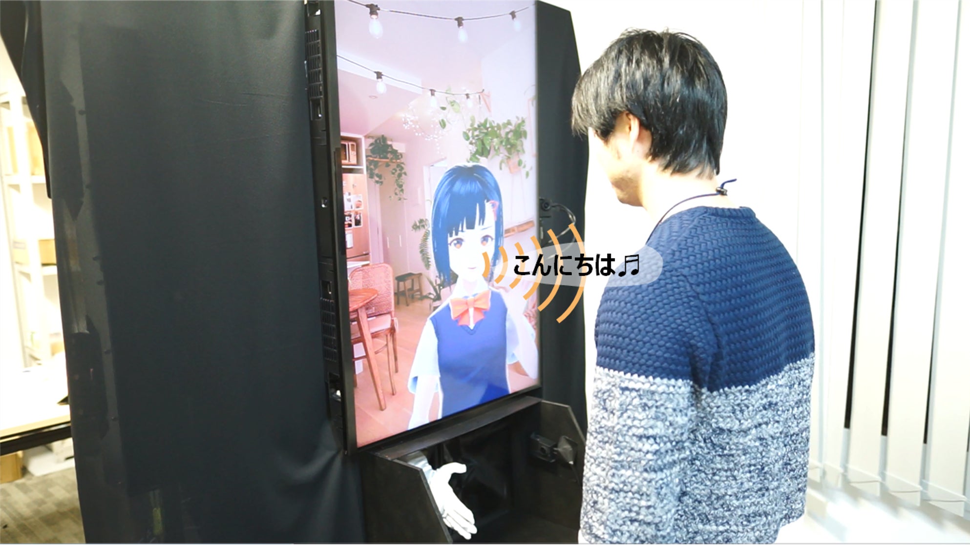 「病院、介護、老人ホームなど」に設置し、画面に人物やキャラクターなどを映し、人の「ぬくもり」を感じ、「孤独」の解消につながるような将来的な活用もできればという思いがあり、ぜひ施設の方にも体験してほしいです。