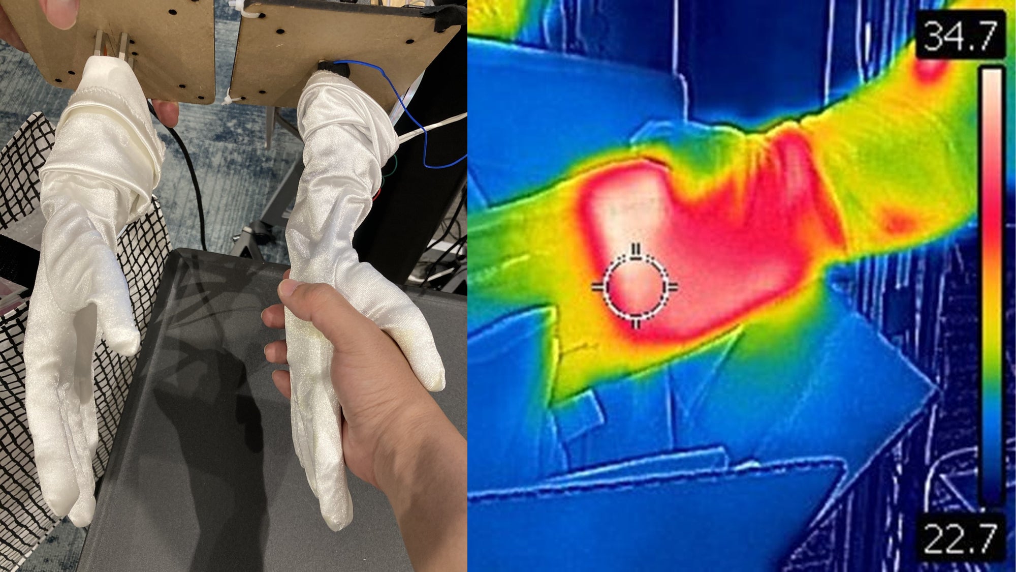 (左図)プロトタイプ2号と3号 (右図)手のひらのヒートマップ