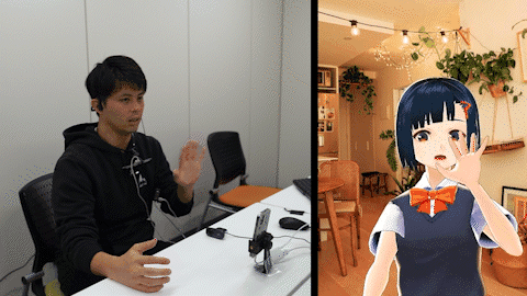自分の分身のような、デジタルヒューマンや、ヒューマノイドロボットへの展開も考えられるように、キャラクターアニメーションも開発しています。カメラキャプチャーベースのAI技術を利用することで、「人の表情の変化」や「人の感情」を推定して、笑ったり、驚いたりといった自然な表情変化を、そのままキャラクターに反映することができます。キャラクターのモデルデータさえあれば、シンプルなデバイス構成でキャラクターの顔、体、腕、手の変化をリアルタイムに反映でき、実在感を生かした演出が行えます。