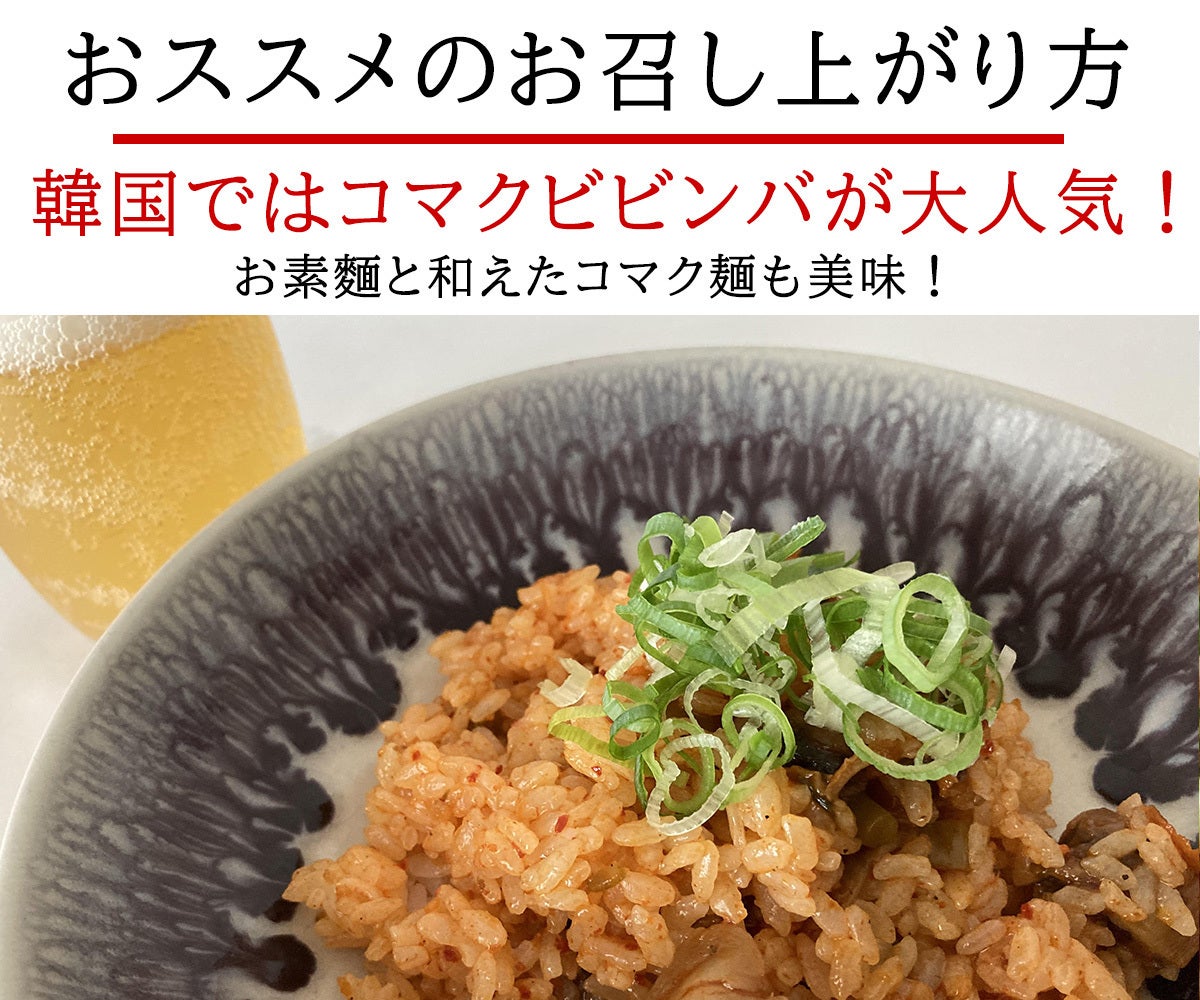 ・【韓国で人気のお召し上がり方 その1 】 ご飯に載せて&混ぜて、コマクビビンバ!