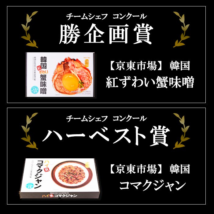 2022/06/27 18:33ご支援いただき、誠にありがとうございます。クラウドファンディングも、いよいよ残り5日になりましたが、先日、嬉しいニュースが届きました!2022年6月9日(木)に開催された【第12回チームシェフコンクール】 にて、(http://team-chef.jp/ )にて、「コマクジャン」が”ハーベスト賞”、「韓国 紅ずわい蟹味噌」が”勝企画賞” を受賞致しました。【チームシェフコンクール】 は、農林水産業の事業者支援という趣旨に賛同した想いに溢れるバイヤーやシェフ100名+aに対して、接点や取引等の機会を創出・提供することを目的にした取組みになり、賞は食のプロの方による試食を通して決定致します。お選びいただき、とても光栄に思います。 もっと見る