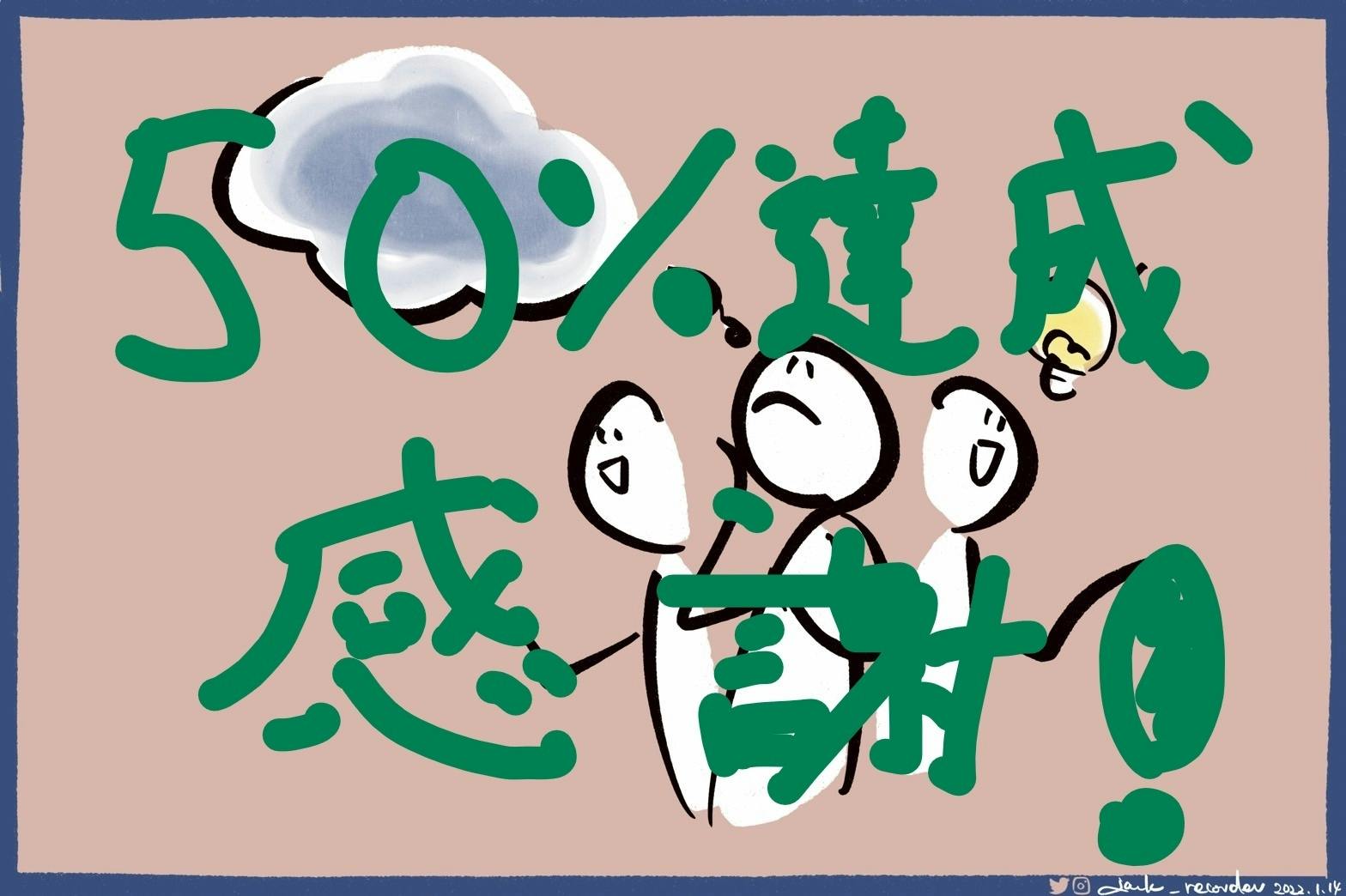 大変ありがたいことに、開始から約40時間で目標達成率50%までこれました。