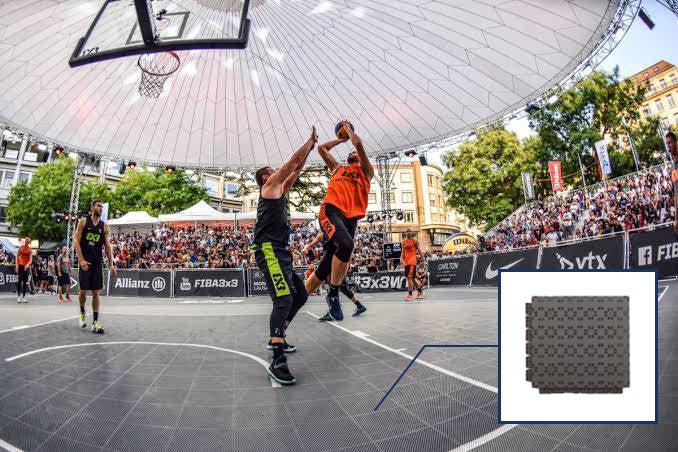 バスケットボールコートは、スポーツコートと呼ばれる小さなパネルをはめ込んで作られます。土やアスファルトよりも怪我のリスクがなく、プレーに集中できるものになっています。はめ込み式なので、移設による再利用も、もちろん可能です。