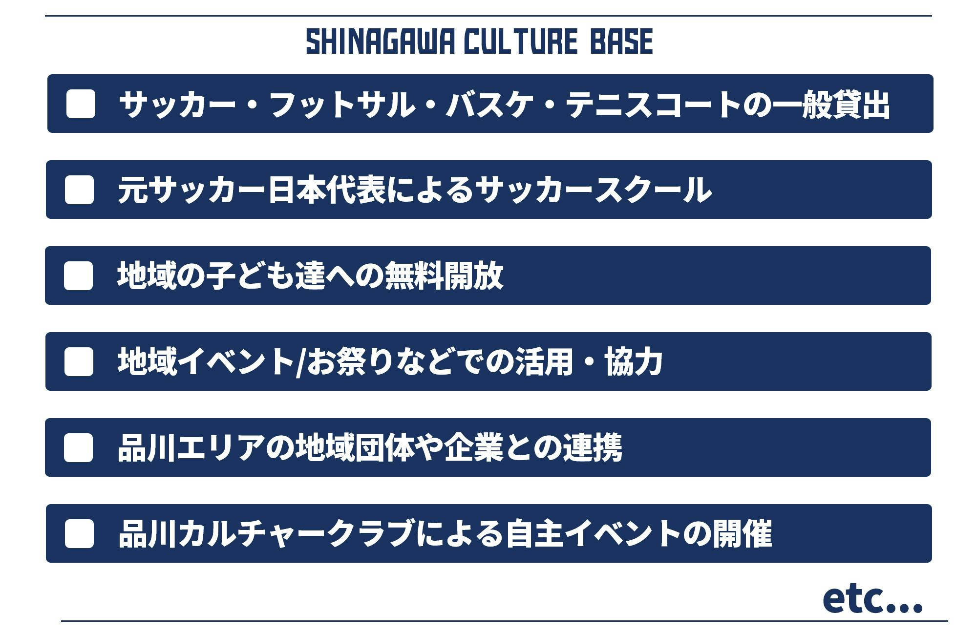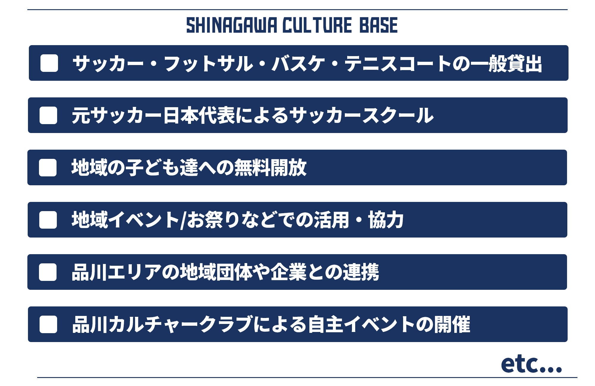 品川カルチャークラブ(以下、品川CC)とは、 2006年に品川港南を本拠地として発足した日本のスポーツ・文化の育成と発展を目的に設立された総合スポーツ・文化団体です。品川港南エリアでは、少年サッカーチーム「港南FC」やチアダンスチーム「GRANITA」を発足させ、約300名の子供達と共に活動しております。 2019年に3人制プロバスケットボールチーム「品川CC WILDCATS」や、2021年には社会人チアリーディング「品川CC Rainbow Venus」を発足し、多競技への展開も強化中です。各チームがそれぞれの枠にとどまらず連携し、チーム運営や地域活動におけるシナジーを発揮し、スポーツ・文化活動の普及を実現いたします。