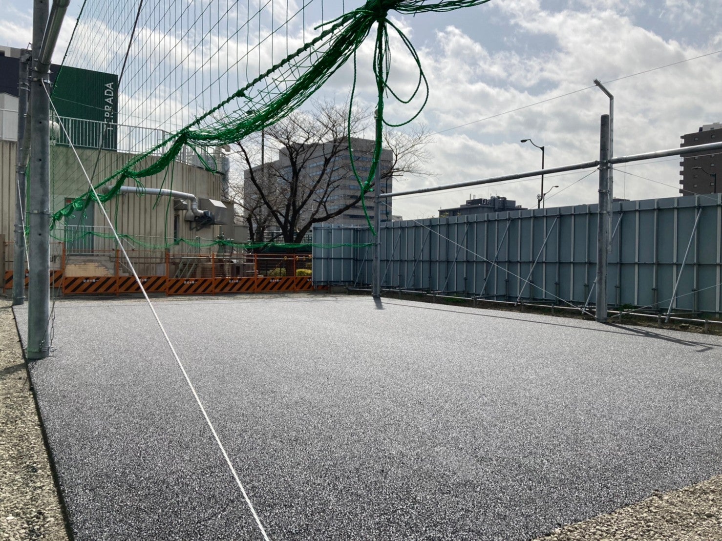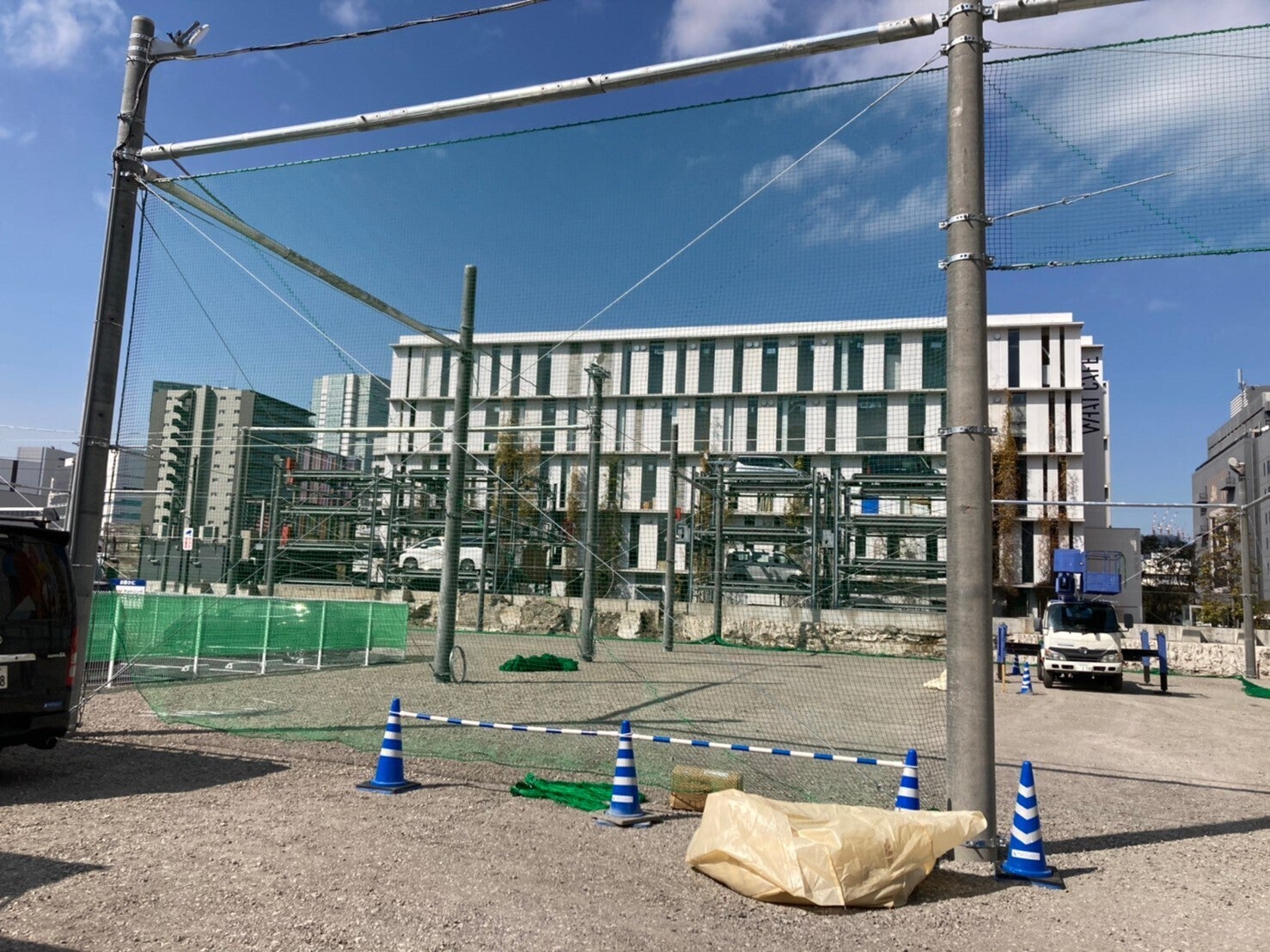 工事は順調に続き、ボールが飛んで行かないように防球ネットが張られ、
