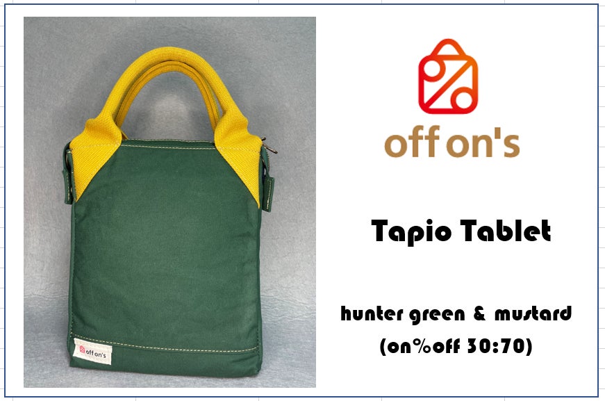 緑色系のこちらは「タピオタブレット」です。色は、hunter green(ハンターグリーン:ロビンフッドのような、18世紀イギリスの狩猟服のような色)を想定しています。森つながりから、フィンランドの森の妖精「Tapio(タピオ)」をイメージしたバッグとなります。