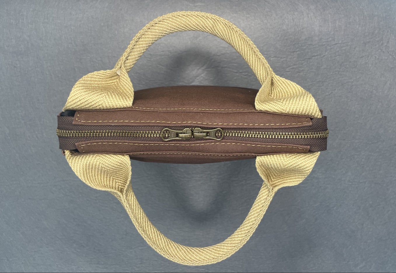 帆布はそれだけでも撥水する性質がありますが、カフェバッグにはさらに「パラフィン加工」と呼ばれる撥水処理を施すことで撥水機能を強化しています。さらに、縫い目を減らす製法やチャック個所を工夫し「雨に強いカフェバッグ」となっています。