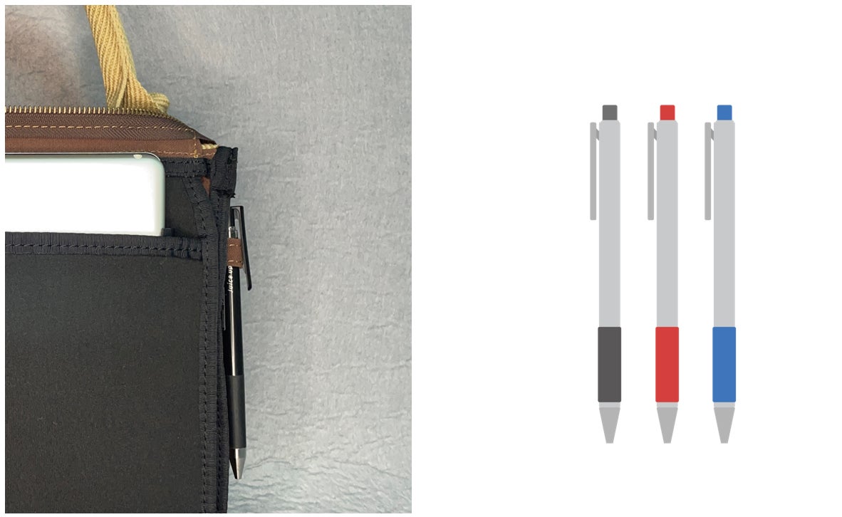 ペンを2本収納できるホルダーフックです。 ベーシックな色とカラフルな色の2色使い分けをしてもよいですし、ベーシックな色2本で急なインク切れに備えることができます。