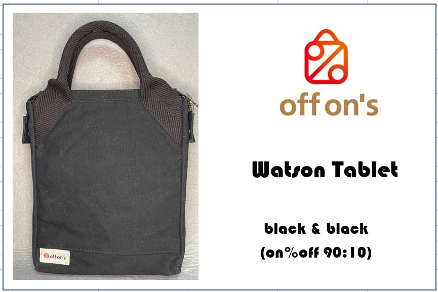 黒色系のこちらは「Watson Tablet(ワトソンタブレット)」です。色は、true black(トゥルーブラック:本当に真っ黒、持ち手も黒、本体も黒)を想定しています。タブレットを持ち、フォーマルな様相で街を歩く「Watson(ワトソン)」さんをイメージしたバッグとなります。