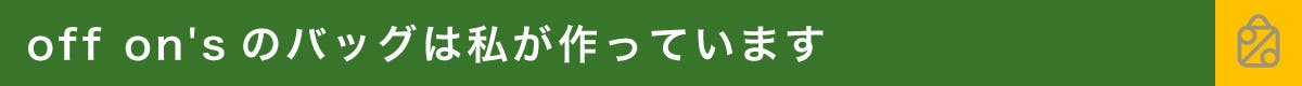 毎年改良を重ね、10年が経つころ、一番下の子が小学校に入学することになりました。「手が空くし、これからどうしよう?』と思っていると「これを仕事にしてみないか?」と夫から話をもらいました。その手には、off on'sバッグがありました。