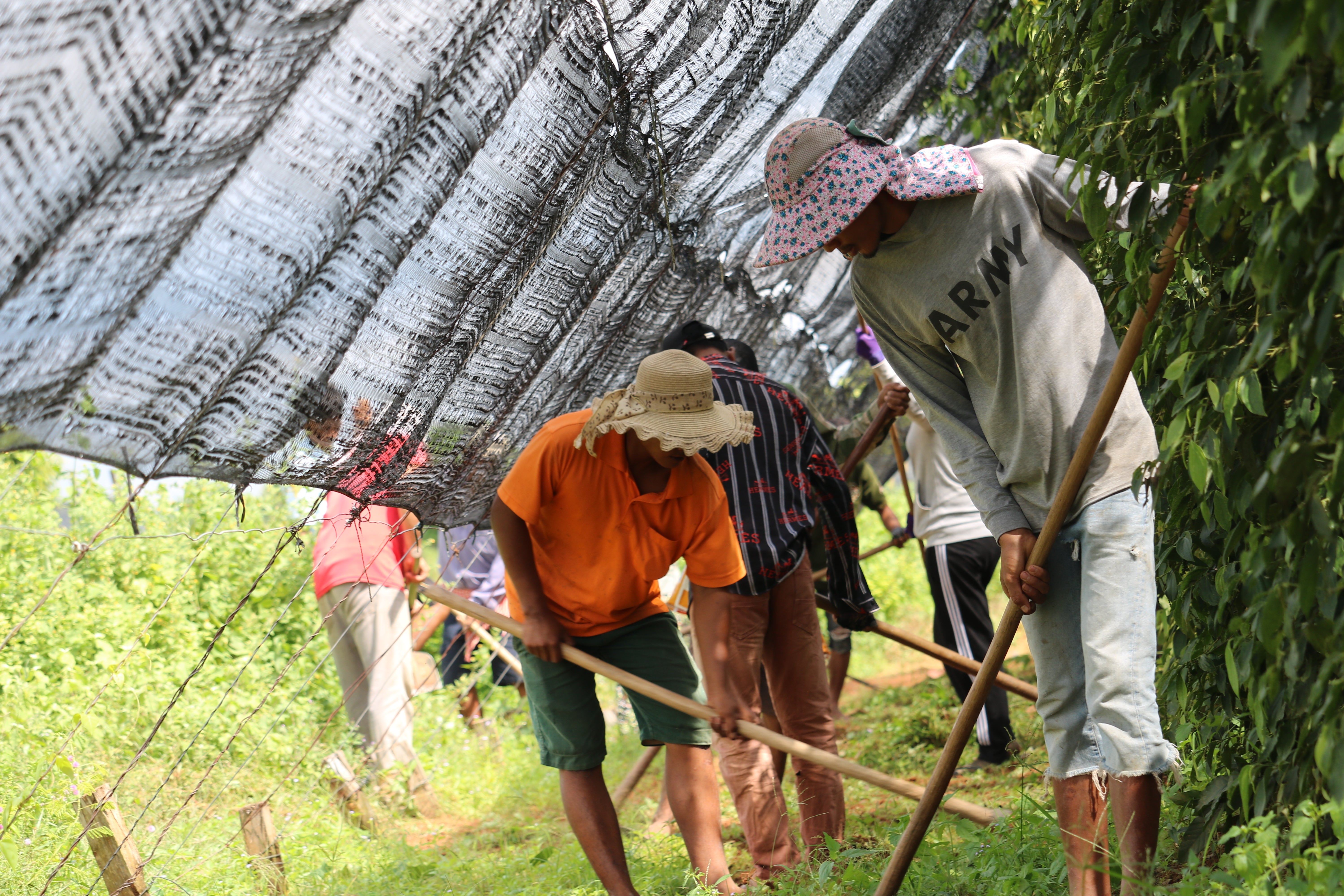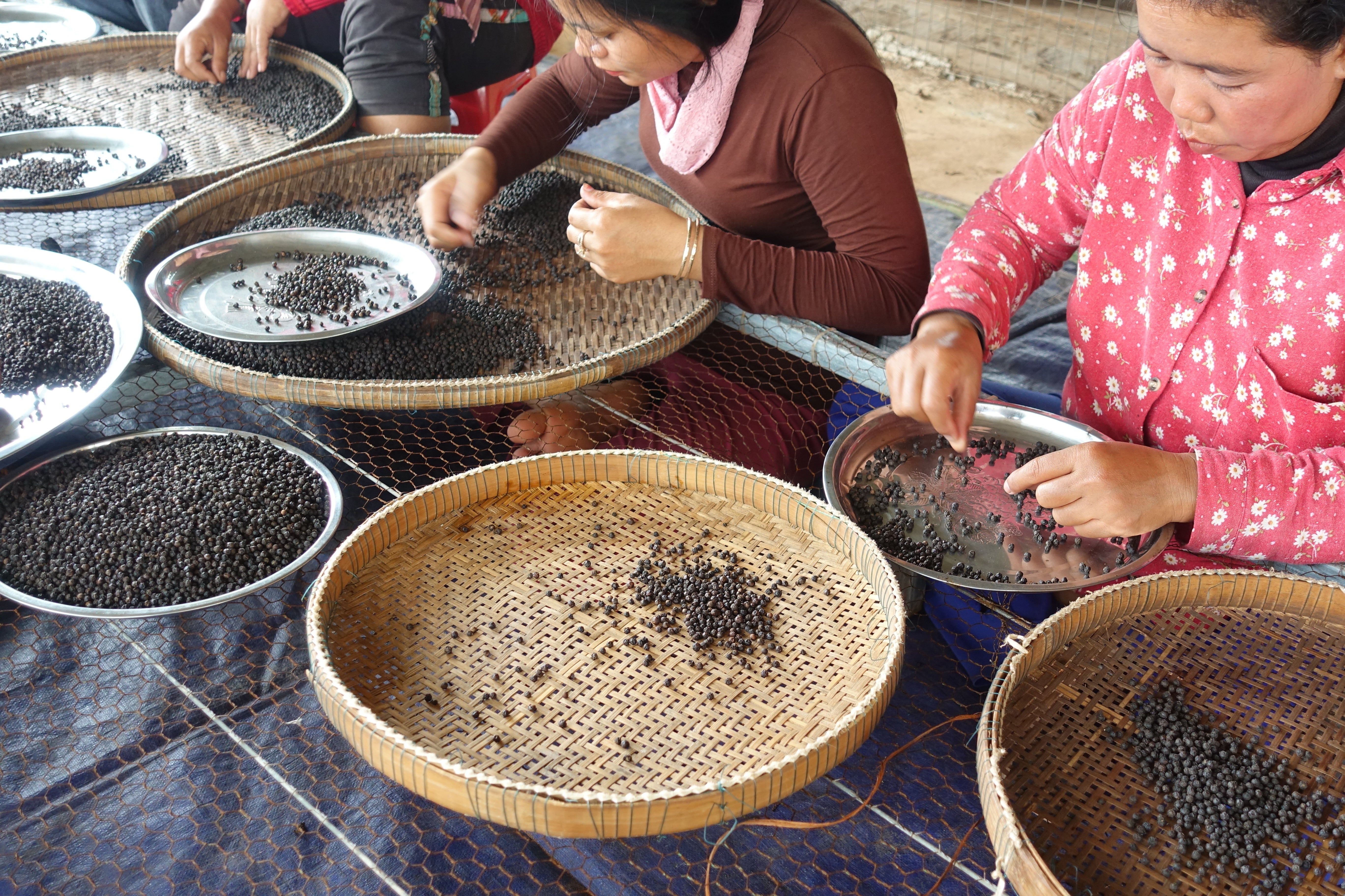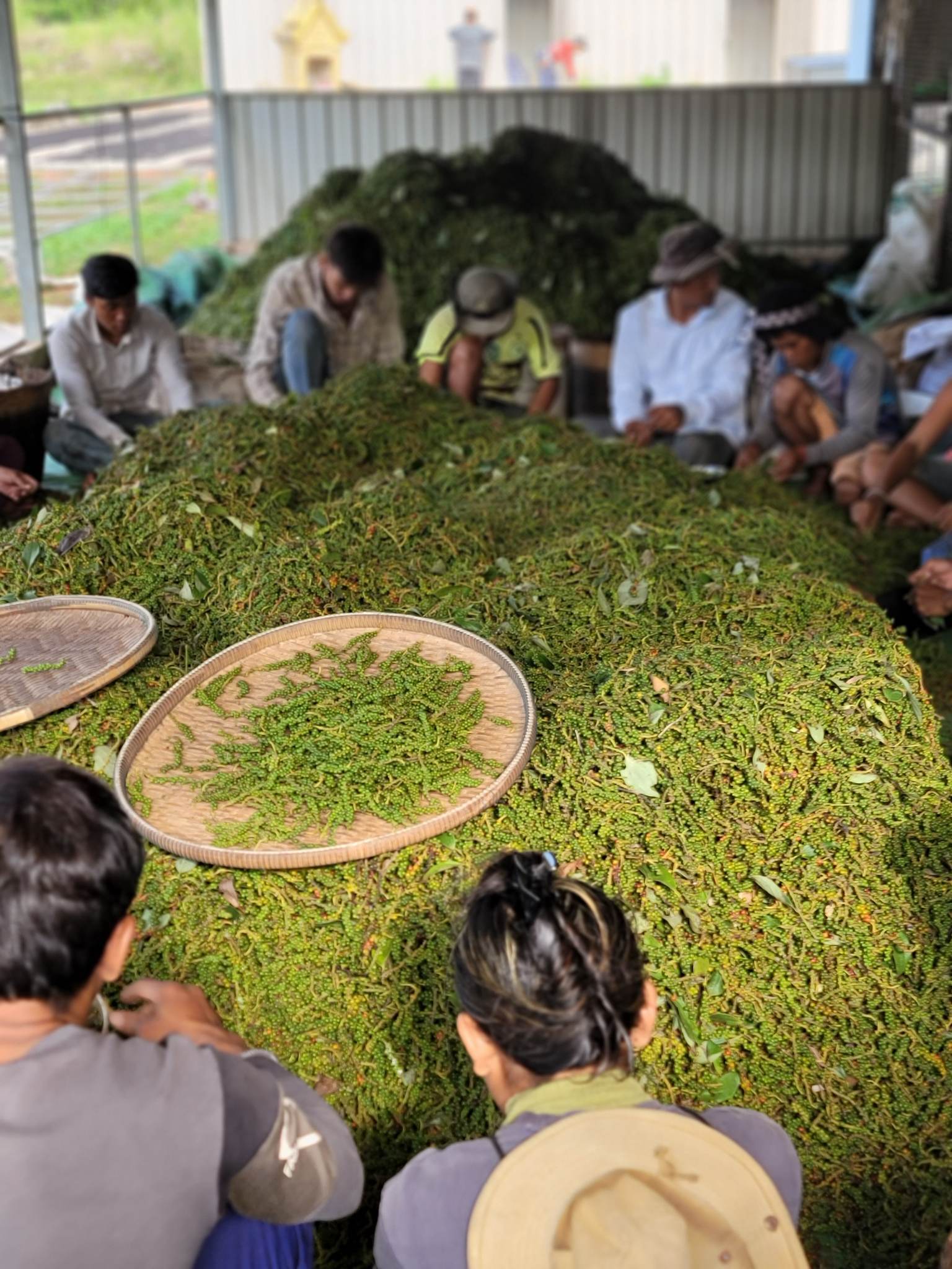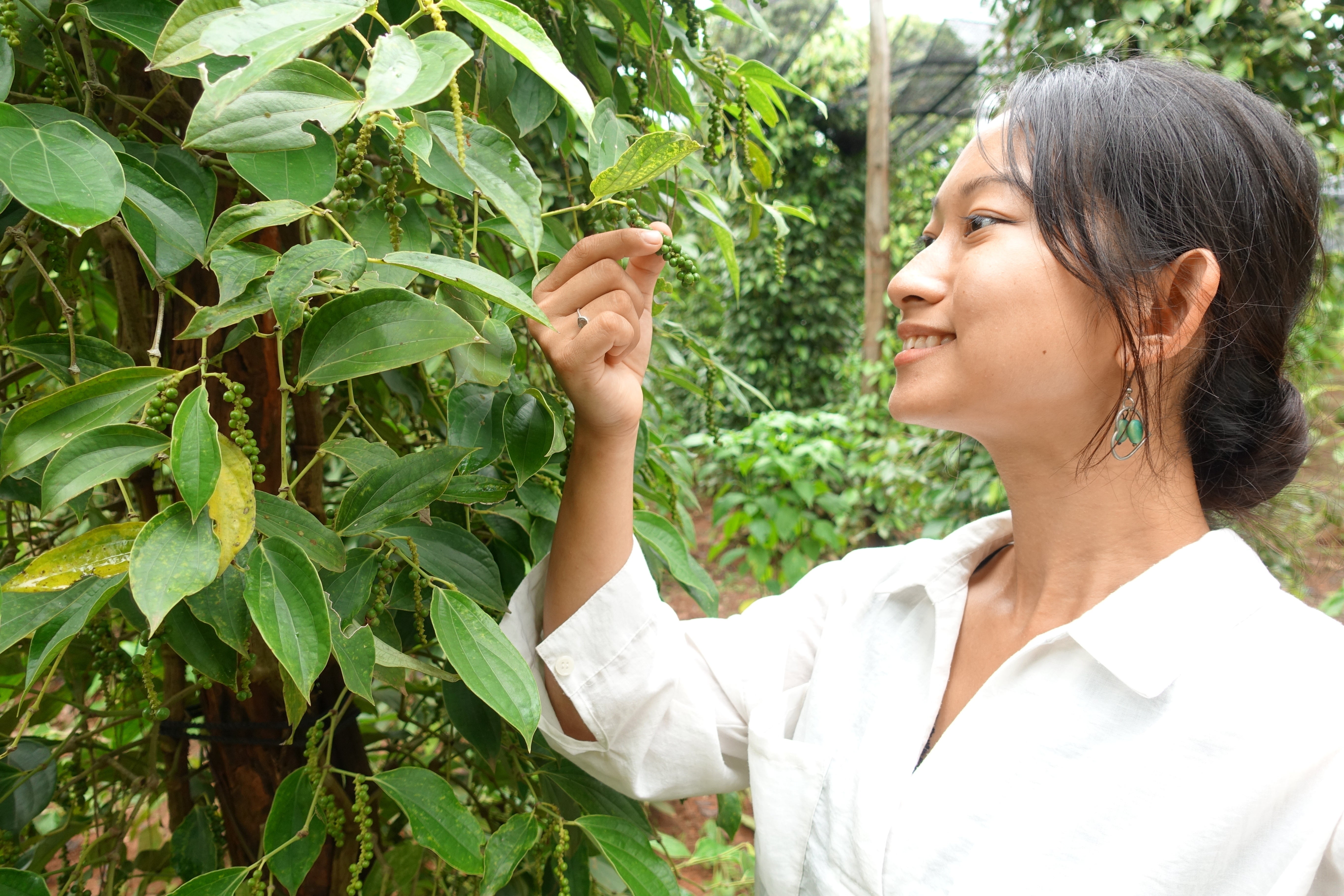 私達のショップでは、農家との繋がりとカンポットペッパーの品質維持に力を入れており、胡椒を仕入れるだけでなく農園に自ら出向き胡椒畑で働くスタッフさんと定期的にコミュニケーションを取りながら、胡椒づくりに関わるスタッフさん一人一人との関係づくり、そして自ら直接仕入れるすべての胡椒の品質チェックを行っています。