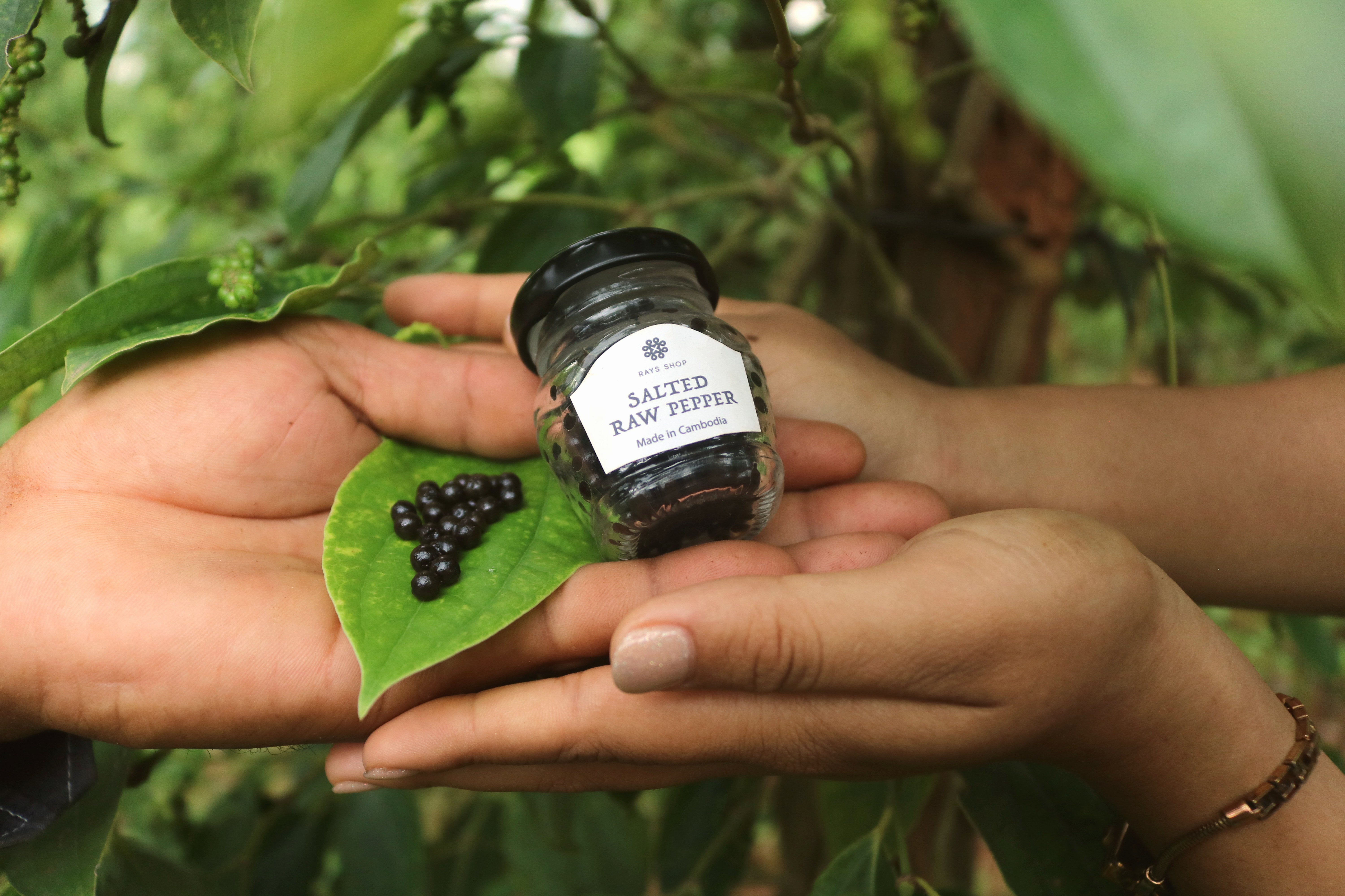 REINAが胡椒の世界に入ったきっかけとなった生の胡椒の味をそのままお楽しみいただけます。プチっとした食感はやみつきです。チーズや半熟玉子と、ハムやステーキと。お召し上がり方は無限大です!まずはペッパーキャビアの粒をそのままお楽しみください。農薬を使わずに丁寧に栽培した生の胡椒を摘み取り、一粒一粒塩漬けにしました。漬け込む際に使用している塩は胡椒と同じ土壌で作られたカンポット産の天然海塩を使用しています。