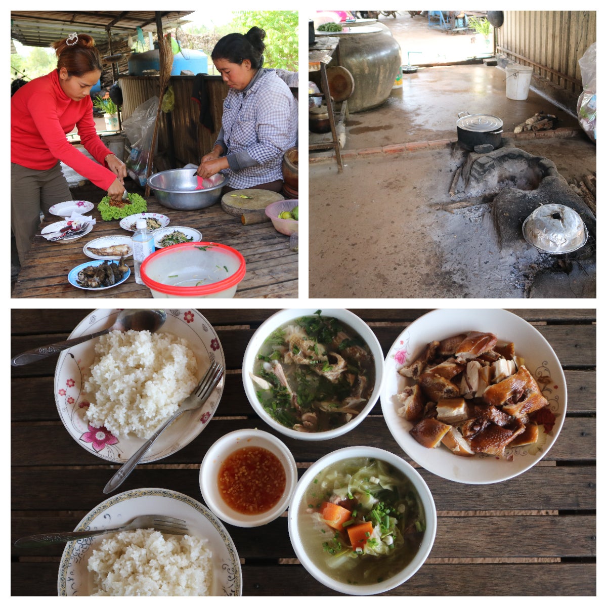 私達の胡椒畑があるカンボジアの小さな村では日本の昭和時代のように薪を組んで火を炊くところから料理が始まります。まさに、1日がかりの作業です。