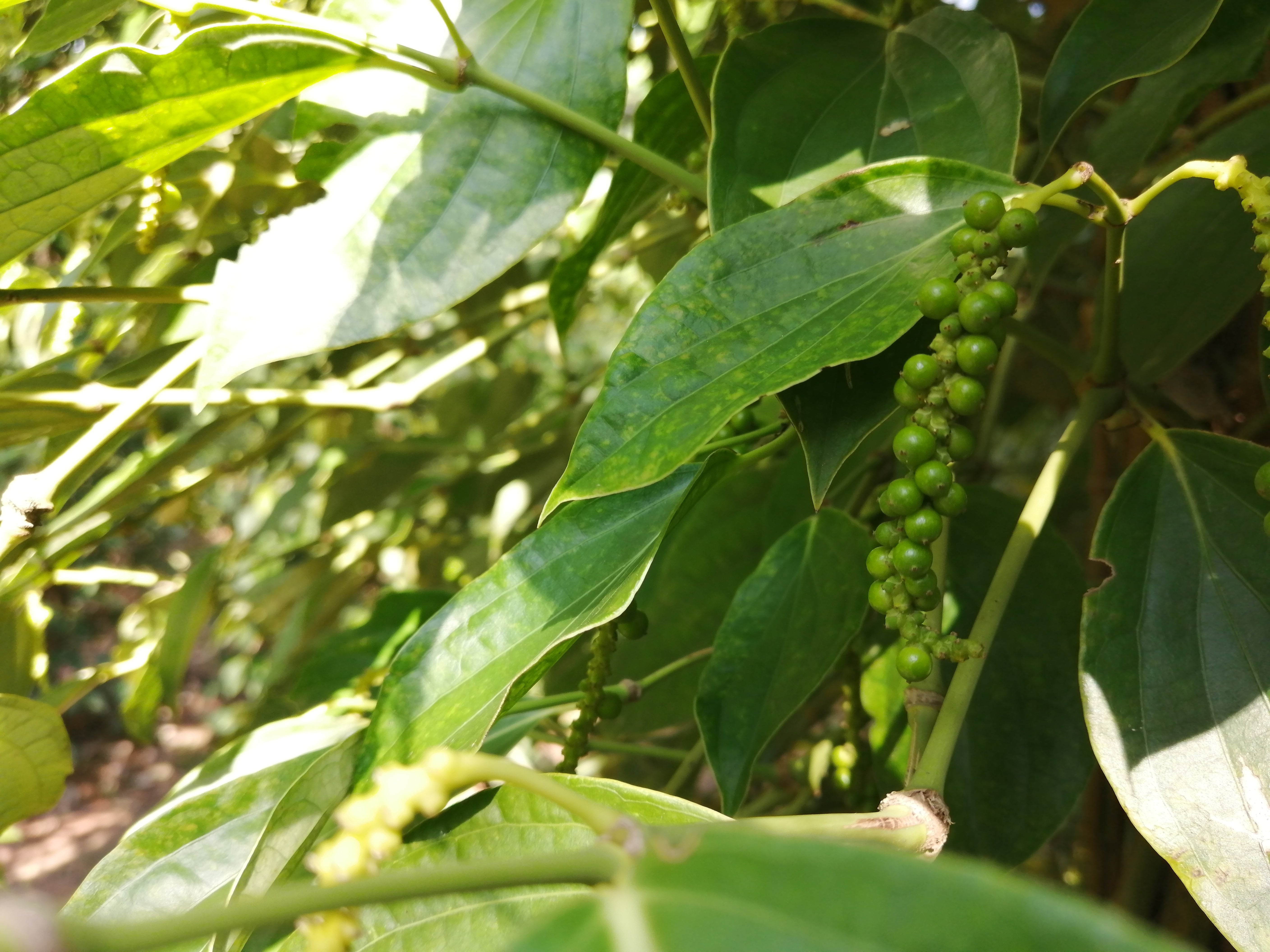 乾燥させる前の胡椒は緑で青々しく丸い粒のようなもの。