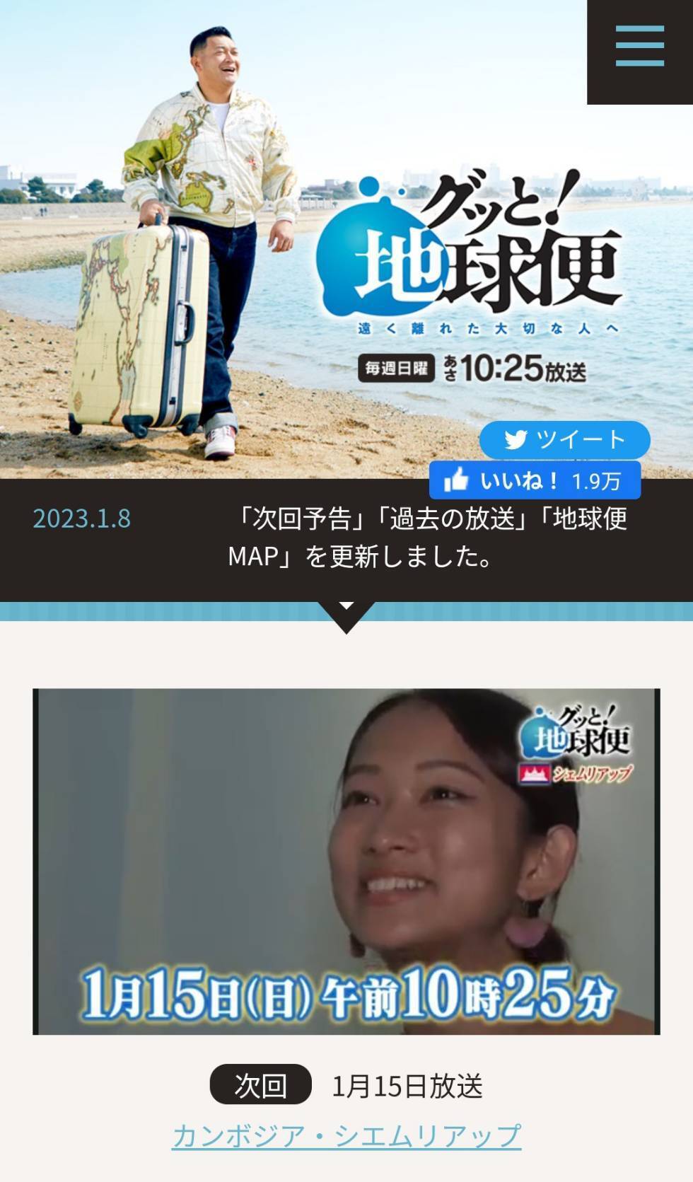 【テレビ出演のお知らせ】私達の胡椒畑が地上波に!みなさん、こんにちは!胡椒ソムリエREINAです。この度!あのぐっさんが出演する、世界各国に住む日本人と家族を繋ぐドキュメンタリーの30分番組「グッと!地球便」に出演させていただくことになりました!シェムリアップ店舗での撮影の様子カンボジア、シェムリアップにあるRAYSSHOP店舗はもちろん、カンポット州にある私達の胡椒畑へも密着していただき撮影しました♪計1週間に渡る撮影!楽しませていただきました♪カンポットペッパーを日本へ広めたい。この想いでチャレンジをしたこのクラウドファンディングから、今度は地上波に!私達のショップと胡椒畑が全国で放送される嬉しさでいっぱいです!なんと私の母も出演しています!故郷の三重県とカンボジアが繋がります♪ぜひ、お楽しみに!■放送日は1月15日(日) 関西地方にて放映されます。■他地域でも全国で放送されます!【青森放送、宮城テレビ、群馬テレビ、テレビ埼玉、とちぎテレビ、テレビ神奈川、テレビ信州、静岡第一テレビ、北日本放送、西日本放送、高知放送、福岡放送、長崎国際テレビ、鹿児島読売テレビ】※お住まいの地域によって放送日が変わります。詳しくはこちらからチェックしてみてください!→https://www.ytv.co.jp/chikyubin/スタッフも出演しています!お楽しみに♡