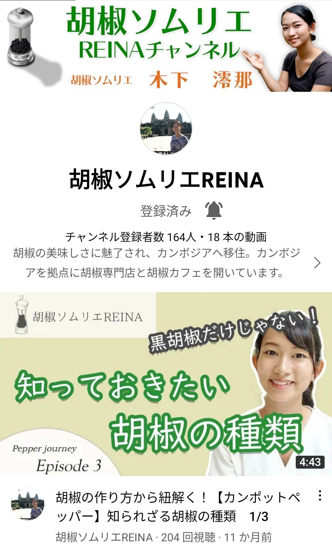 胡椒ソムリエレイナのYouTubeチャンネルにて、カンポットペッパーの美味しい使い方をご紹介しております。