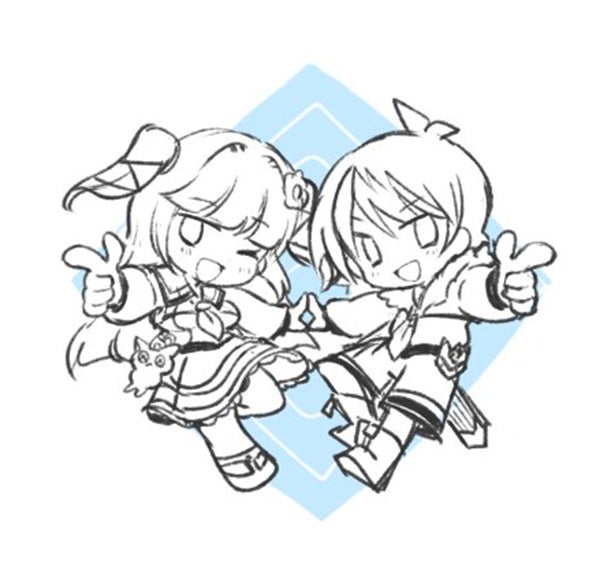 ペンライトのラフイラストを公開!2人でばきゅーんポーズしてます。完成をお楽しみにしていてください。