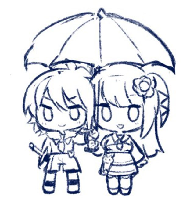 アンブレラマーカーののラフイラストを公開!アレルイの相合い傘です。完成をお楽しみにしていてください。