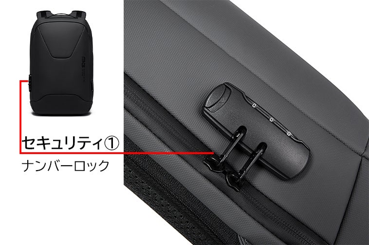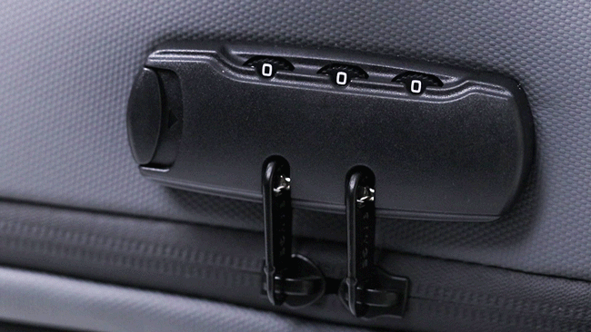 側面にジッパーと一体化したナンバーロックがついており、日常使用でも旅行でも安心です。