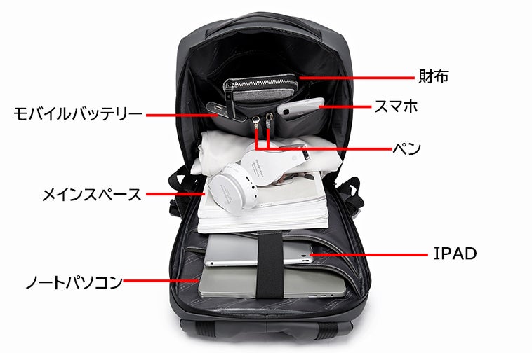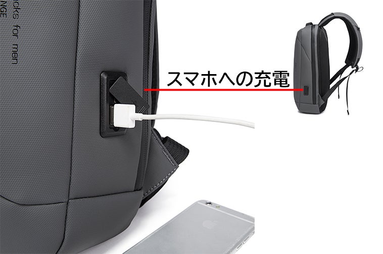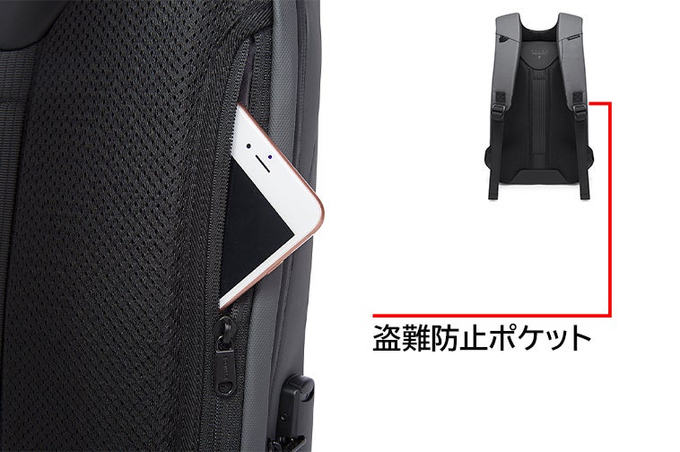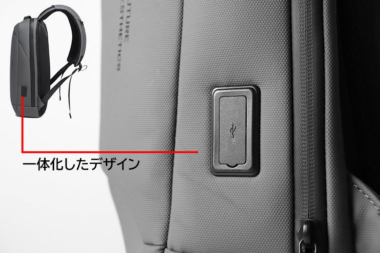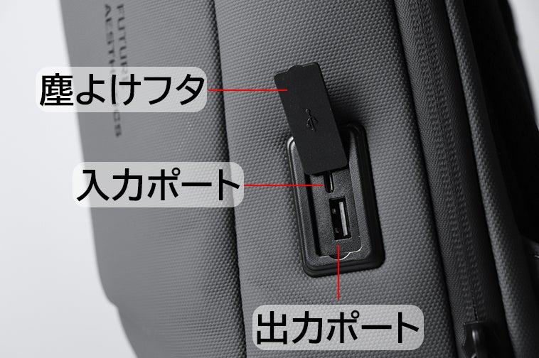 さらに、今までなかったUSB Type C入力ポートを採用するため、リュックは内部のデバイスを取り出さずにデバイスへの充電が可能です。