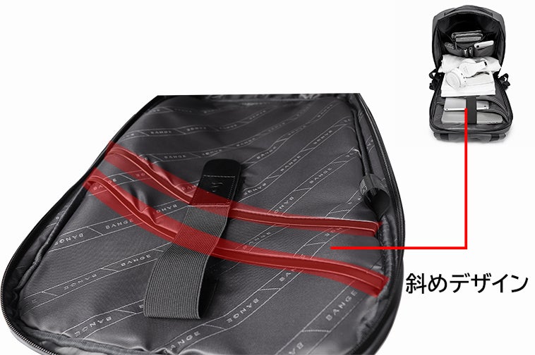さらに、ノートパソコンとIPADのポケットは斜めにデザインされたので、物を取るのに便利です。