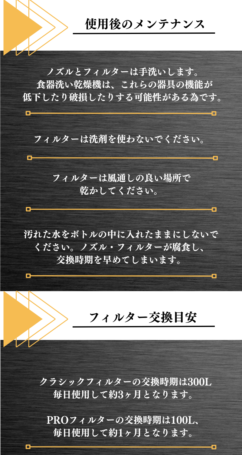 A:手洗いを推奨しております。BLACKボトルは「パウダーコーティング」を施している為、高圧な食洗機ですと、塗装が剥げる恐れがあります。スポーツノズルやスクリューキャップも劣化を早める可能性がある為手洗いをお勧めしています。