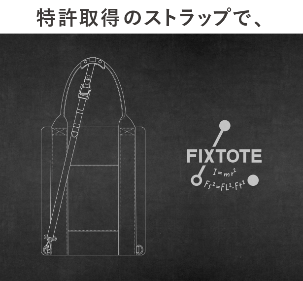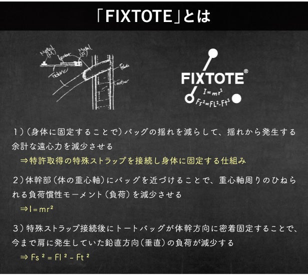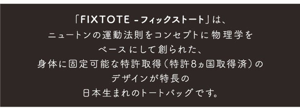 「FIXTOTE」は、ニュートンの物理学と東京工業大学の英知を駆使し、8年の歳月をかけて生まれた全く新しいトートバッグです。