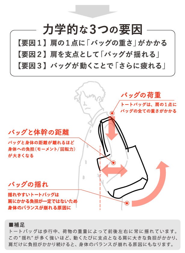 「身体に固定できるトートバッグ」があれば、と考えるようになったのは、その頃からでした。