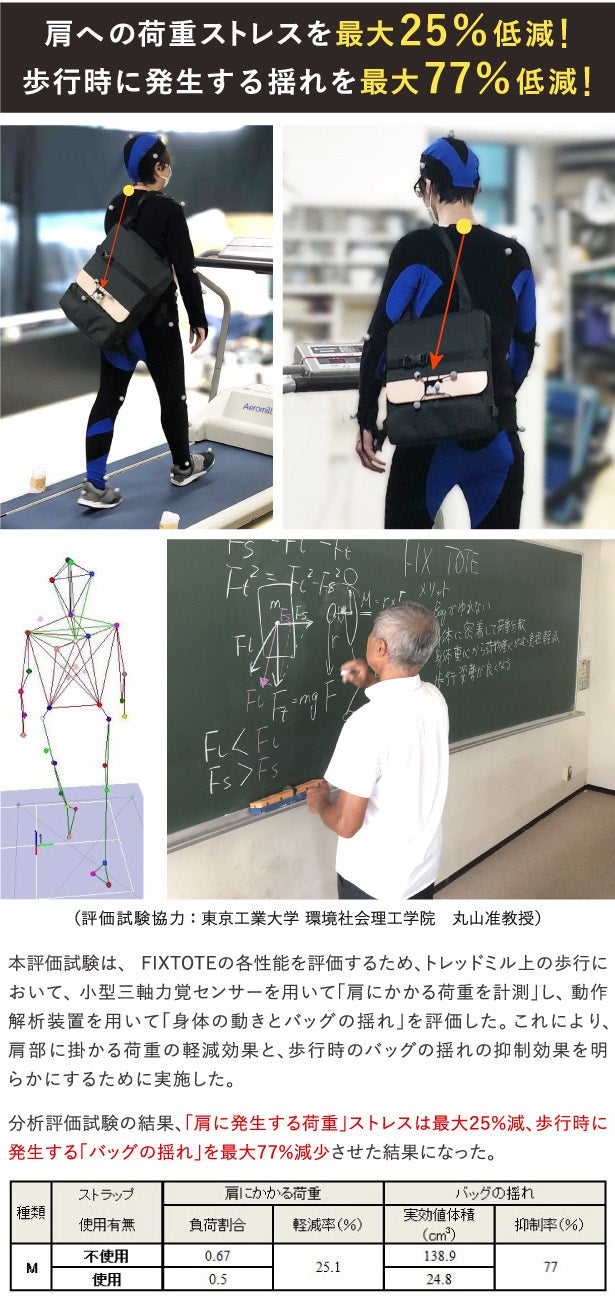 固定することで荷物の「揺れ」も軽減され、ラクに感じることがわかりました。そして、生体力学の准教授の協力のもと、試行錯誤を繰り返し、約8年の歳月をかけて完成。