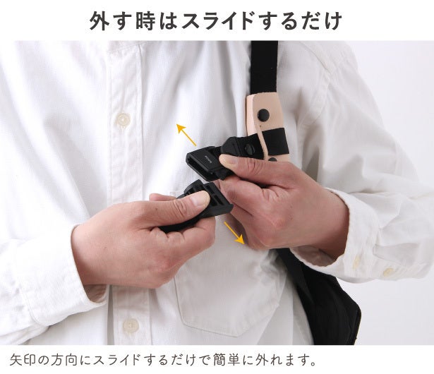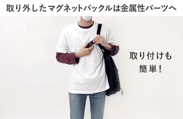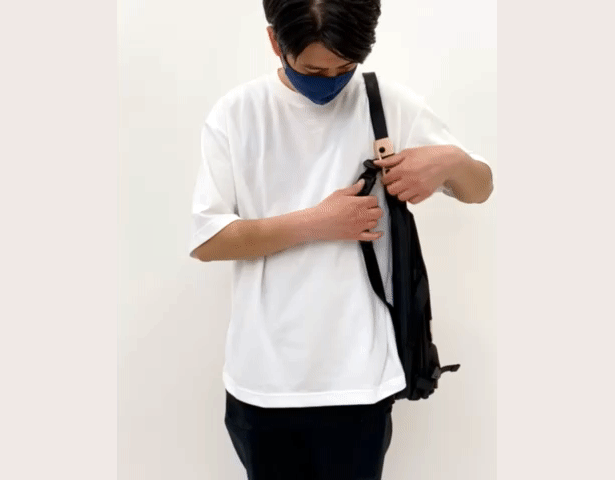 そして、トートバッグのデザインはそのままで、ストラップによって簡単に身体に固定ができ、安全に自転車に乗る事もできて、両手も自由になる「固定式トートバッグ」を思いつきました。