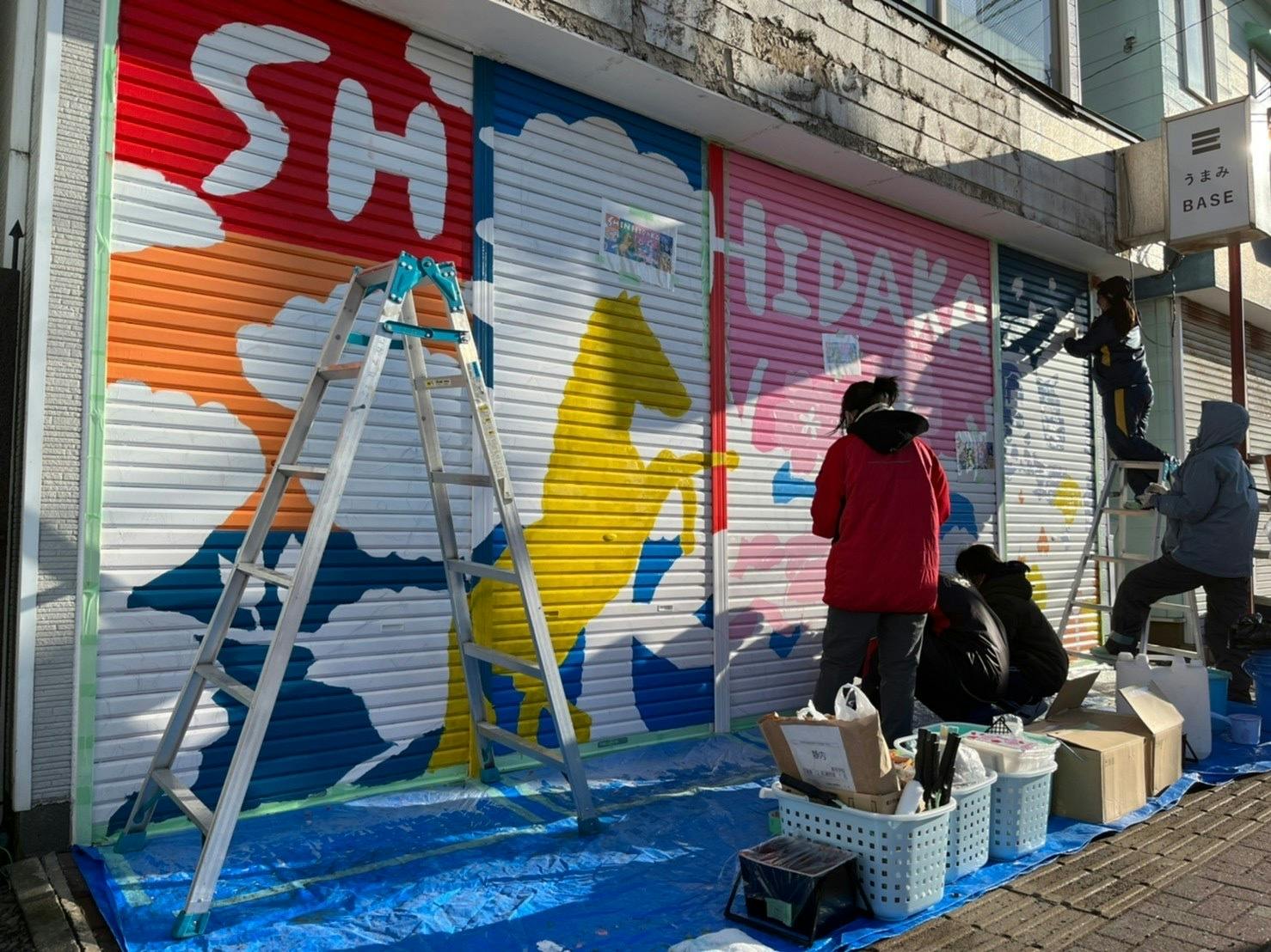 今回シャッターを描くことに賛同くださったのは、新ひだか町役場、御幸通商店街の皆様です。改めて、この場をお借りして御礼申し上げます。