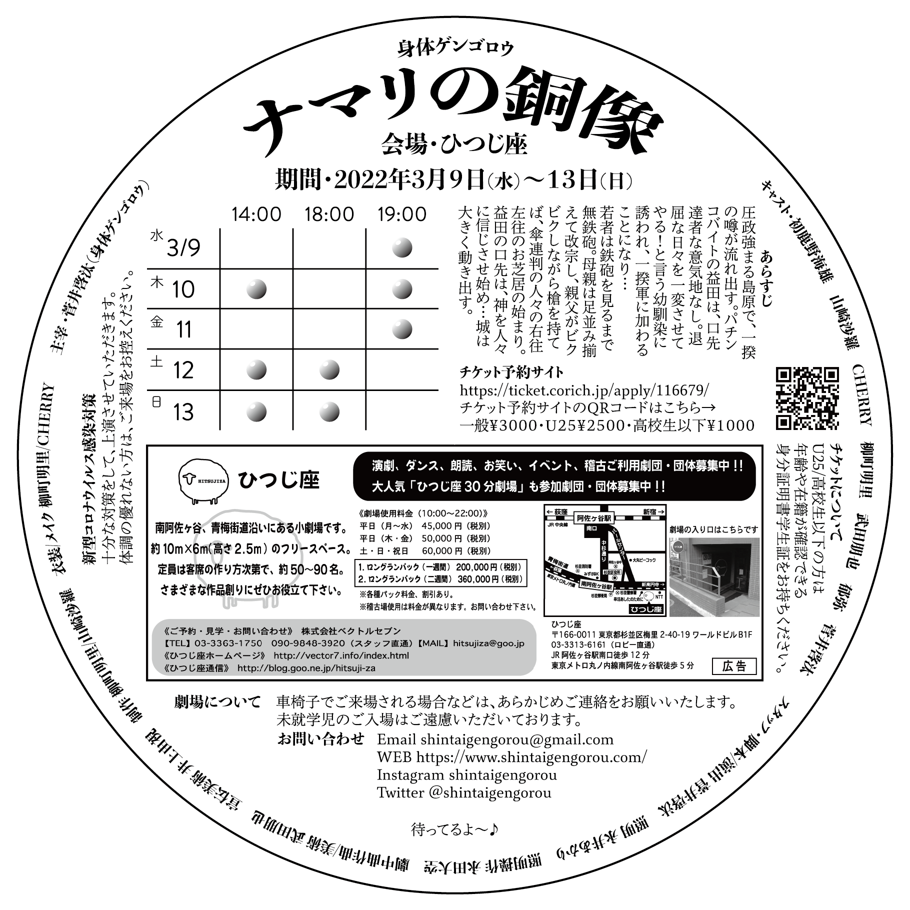 2022年3月9日(水)劇団 身体ゲンゴロウ第4回公演「ナマリの銅像」開催