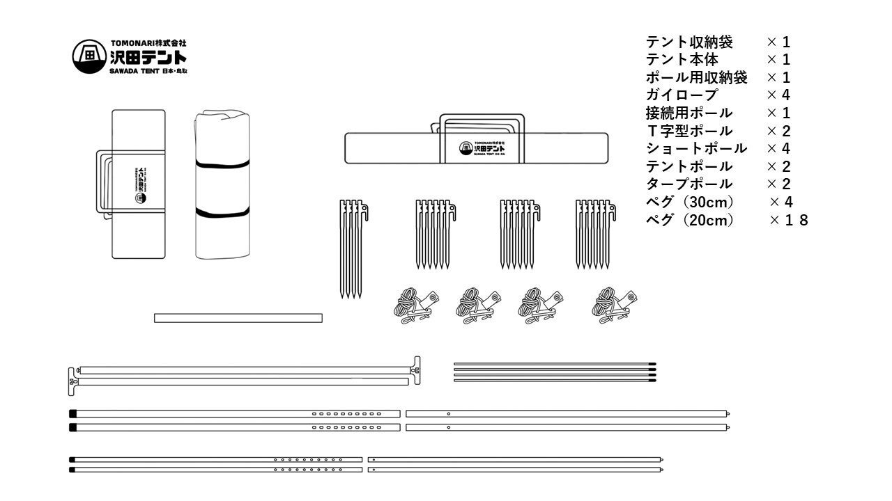 (延長タープ用のポール2本は付属しておりませんので、市販品やお使いのもので代用可能です)
