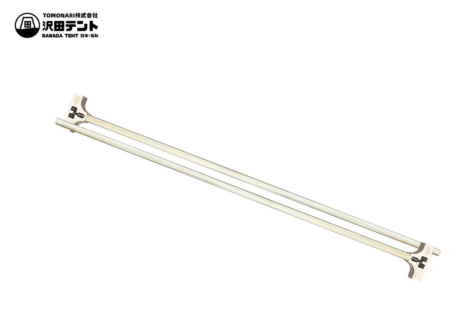 3) T字型ポールと接続用ポールを繋ぎ、長さを調整しながらまっすぐになるよう押し伸ばします。