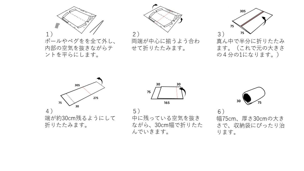 1) テントを平らに広げ、30cmのペグで四隅をしっかりと固定します。