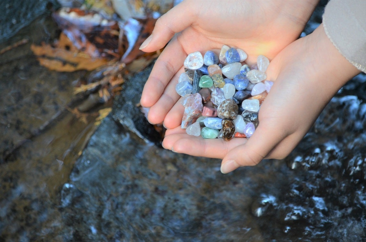 水が流れる川底の砂利の中から宝石を探すワクワク体験!夢中になって探して、発見したときの興奮は癖になる?! 制限時間20分で、発見した宝石は全部持って帰ることができます。